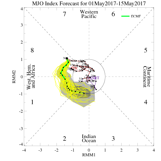 A somewhat cooler, active or unsettled pattern may continue, after this cut-off low eventually departs or decays. This is as ensemble guidance still shows some residual high latitude blocking, and West Coast ridging, keep some troughiness over Northeast and Mid-Atlantic region over next couple weeks. The MJO also foretasted to be in phases 8/1 over next two weeks gives also more credence to this pattern as well. So it doesn’t look like we will be seeing much more summer-like warmth after this week. Stay tuned for more zone forecast and other updates on the more cooler and unsettled weather pattern developing again over next couple of weeks.
