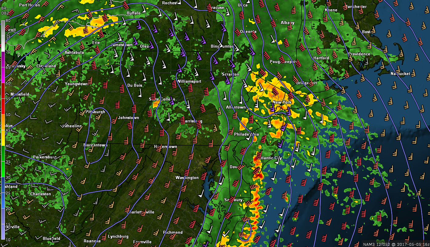 This afternoons high-resolution 3km NAM showing very heavy training showers and isolated thunderstorms over the NYC metro area by 12pm Friday afternoon