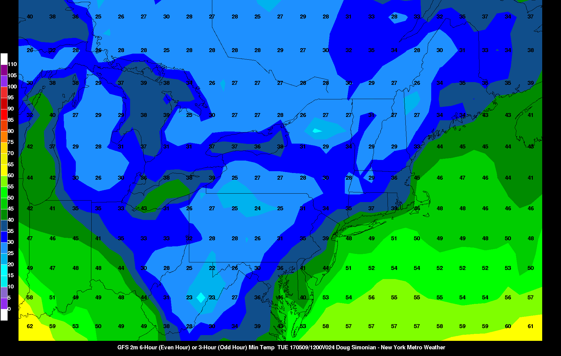 Today’s 12z GFS valid for Tuesday morning shows overnight lows dipping into the 30s for areas west of I-95 in NJ.