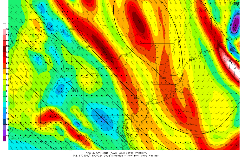 Tuesday night may actually be chillier than Monday night as those faster NW wind barbs aloft shown to our southwest in the above image move into the area, which is a byproduct of upper-level confluence. Upper-level confluence usually leads to more subsidence beneath, so clouds may actually clear a bit. Frost is possible in interior valleys.