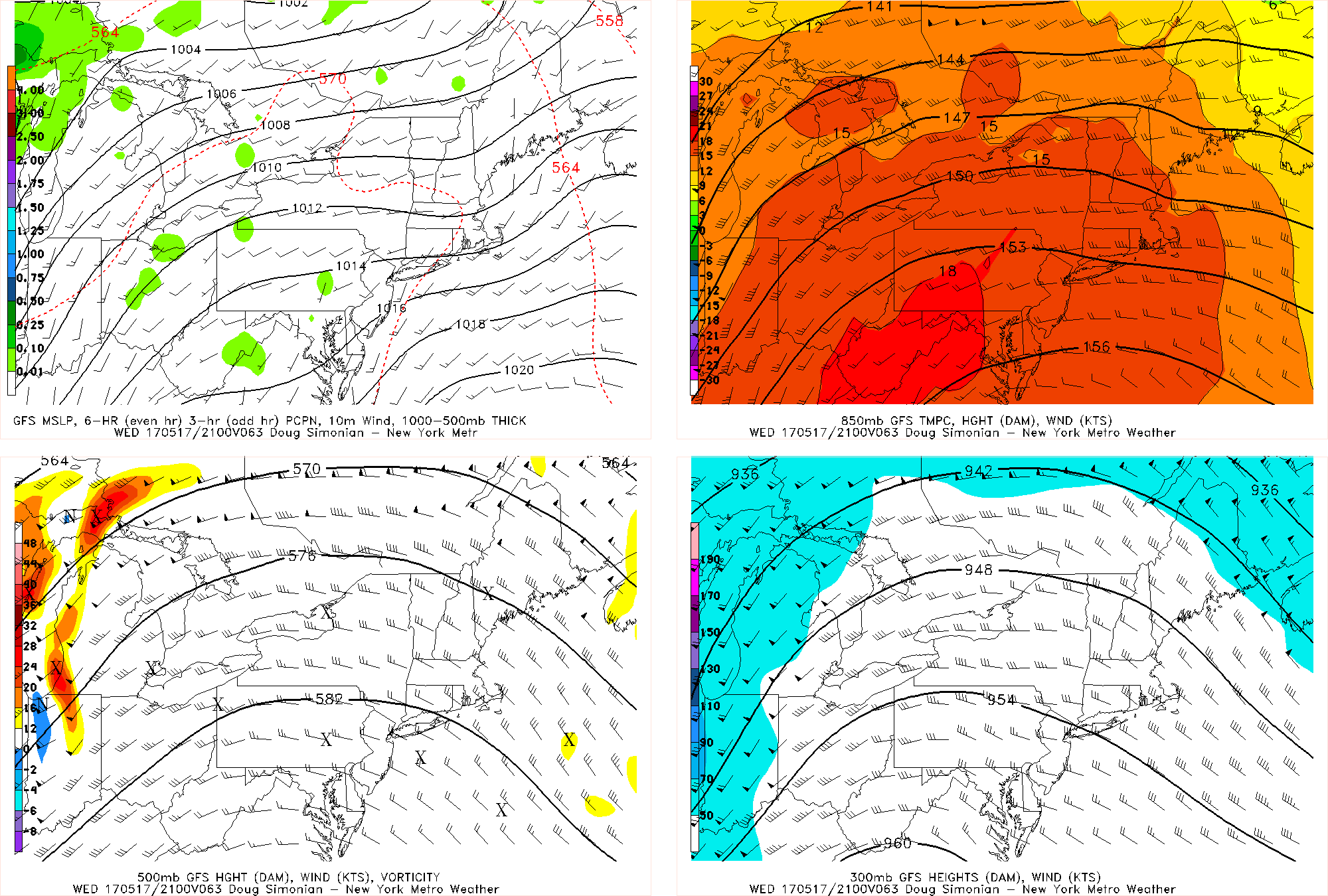 GFS model forecast with a strong mid-upper-level ridge and 850mb temperatures between 16°C and 18°C over the region on Wednesday