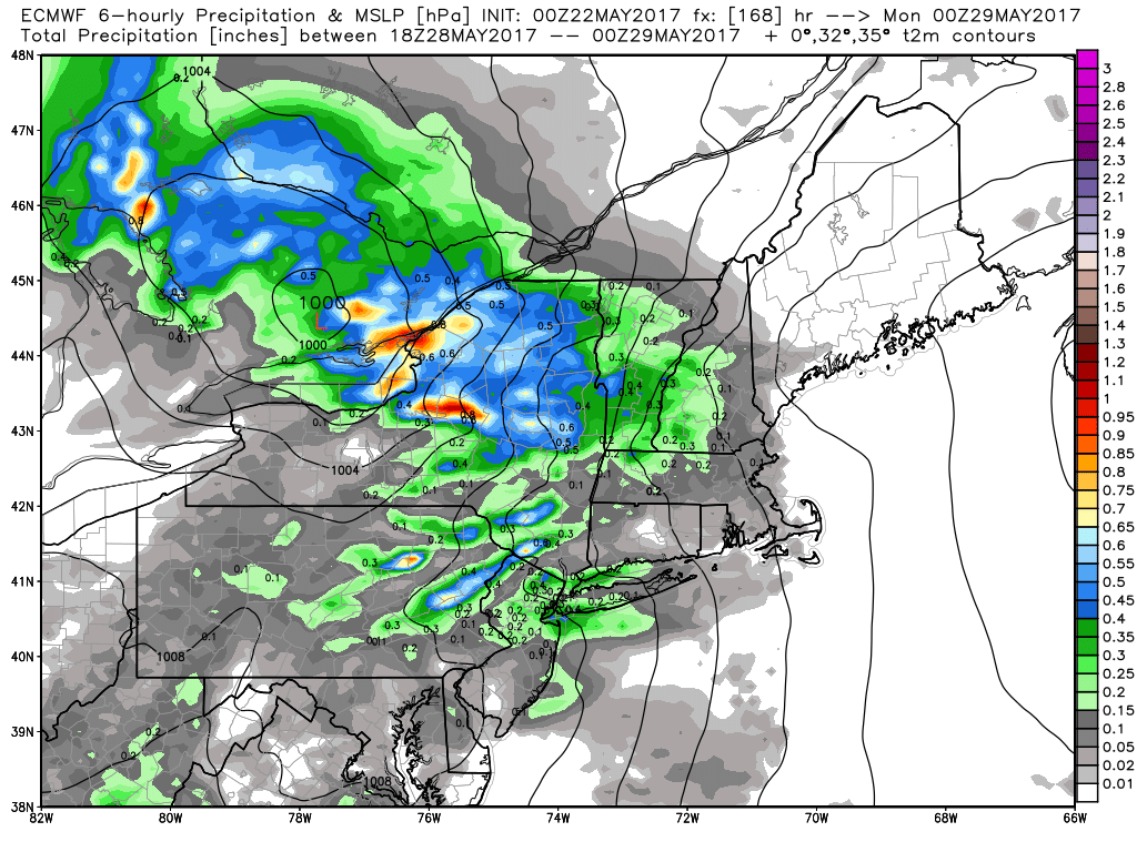 For Memorial Day weekend, this trough and closed low will be moving into Southeast Canada. This will allow for some mid-upper level ridging to build into region. Some improving weather looks likely for the start of the first big holiday weekend of the Summer,  at least on Saturday and no washouts are anticipated each day. So don’t cancel or change any outdoor plans yet.