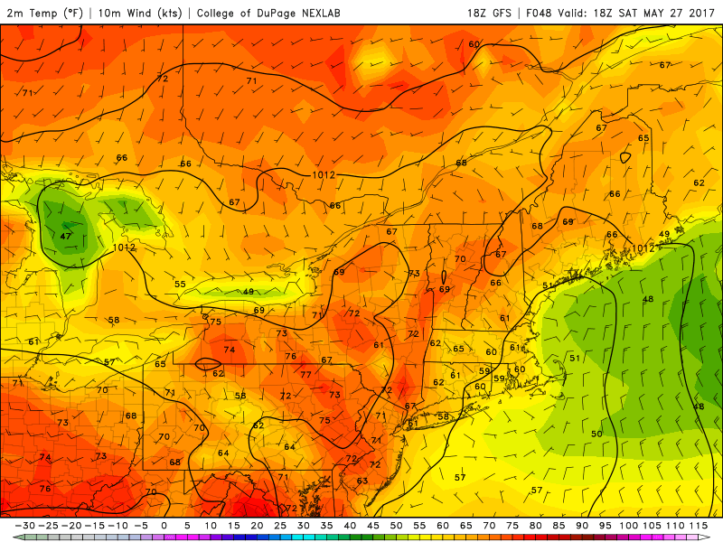 Largely unsettled weather will again return on Sunday and Memorial Day as a warm front slowly approaches the region from the southwest. While no widespread or heavy rain is anticipated, and timing is uncertain, plenty of clouds and few scattered showers and thunderstorms are anticipated at some point each day. As a result, temperatures may average near to below normal once again in the 60s or lower 70s.