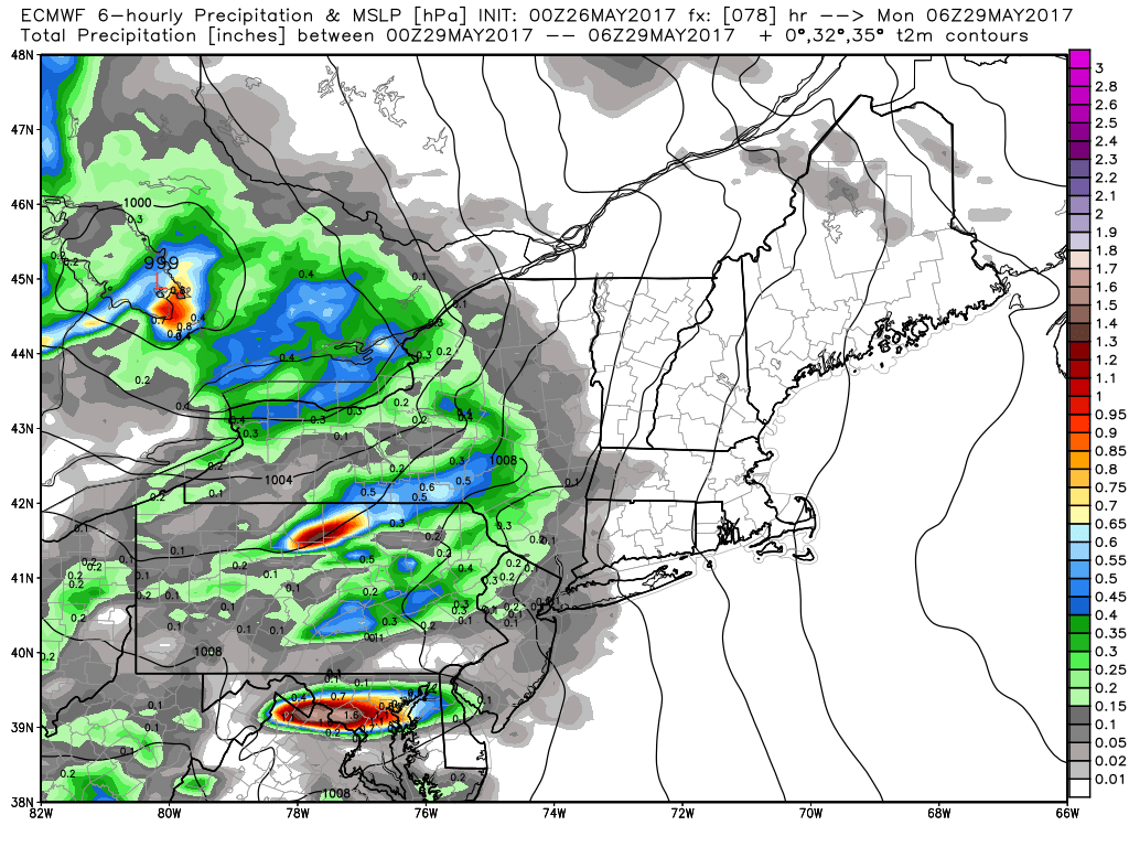 On the other hand if this wave of low pressure remains very weak, these fronts will likely move through region faster, with more clearing and warmer temperatures at least in the 70s by Memorial Day afternoon. At this time, we are leaning towards this solution for Memorial Day, with the flow a little faster along the East Coast. But this forecast will likely be fined tuned somewhat, as we move through the holiday weekend.