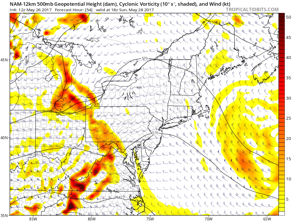 Then skies will become more clear overnight with temperatures dropping into the upper 40s over Interior to middle 50s over urban and coastal areas. Some unsettled weather will continue through this Memorial Day weekend. But no washouts are still expected. For Saturday, weak high pressure will be over region for much of the day. This will support more sunshine during the morning hours. Then some clouds will likely begin increasing during the afternoon, as a mid-level disturbance (shortwave) approaches from the northwest. Instability or moisture will be limited with this disturbance. But a few isolated or scattered showers are still possible by late in the afternoon or evening, especially just west and south of NYC.