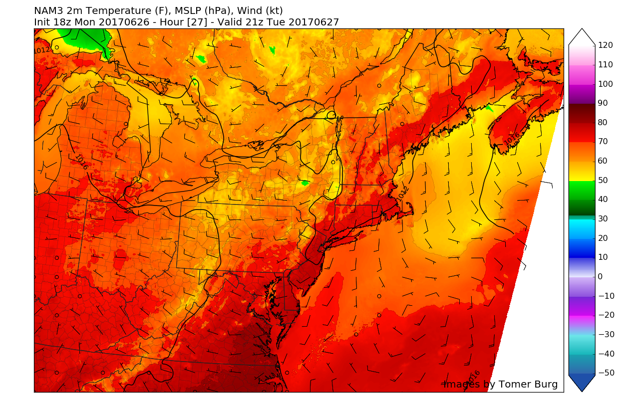 A quick summary of the conditions for the Fourth of July-orange colors denote areas of higher than normal pressure