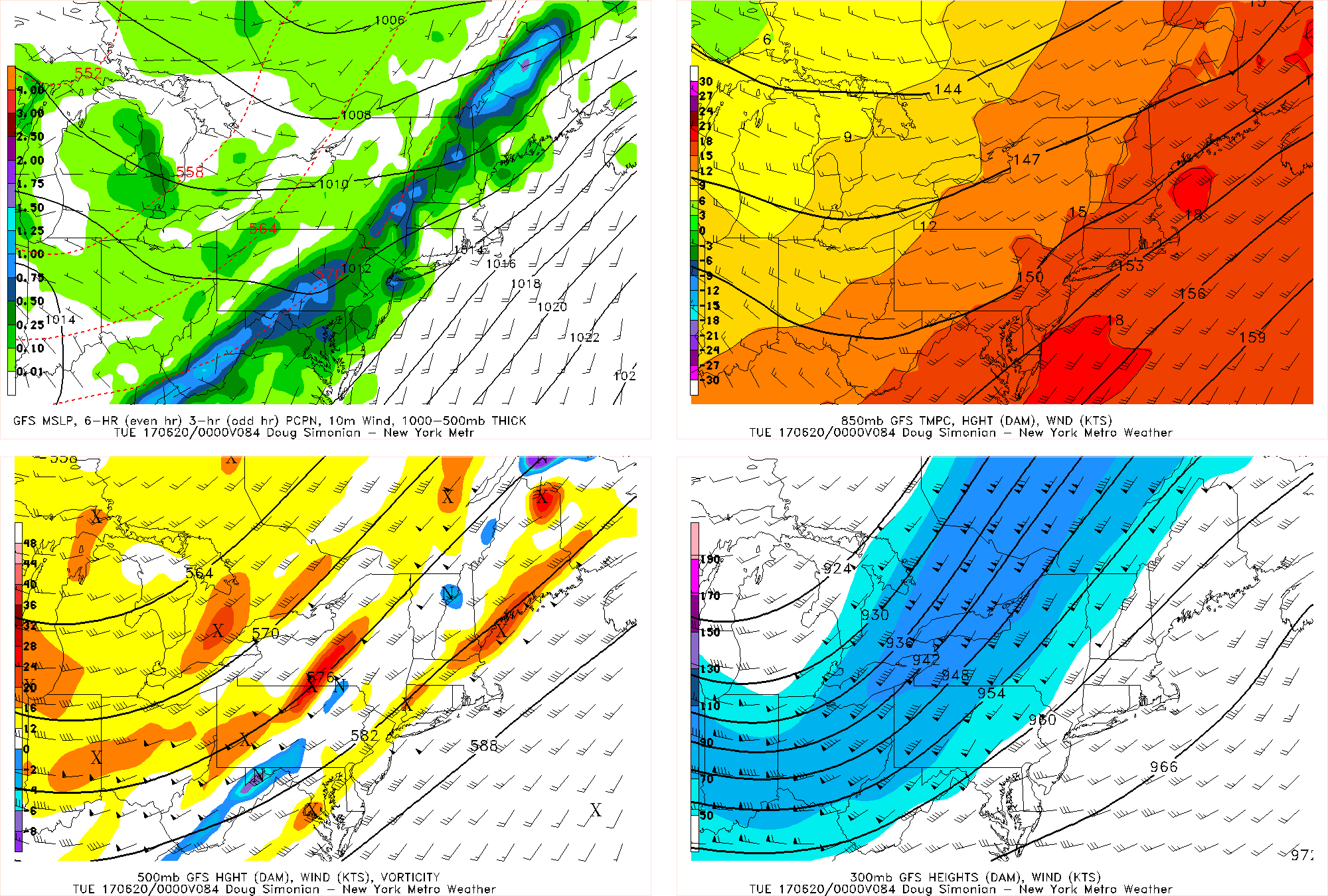 Friday’s 12z GFS valid for Monday evening shows a strong trough with deep southwest flow entering the northeast, and convective, training thunderstorms developing.