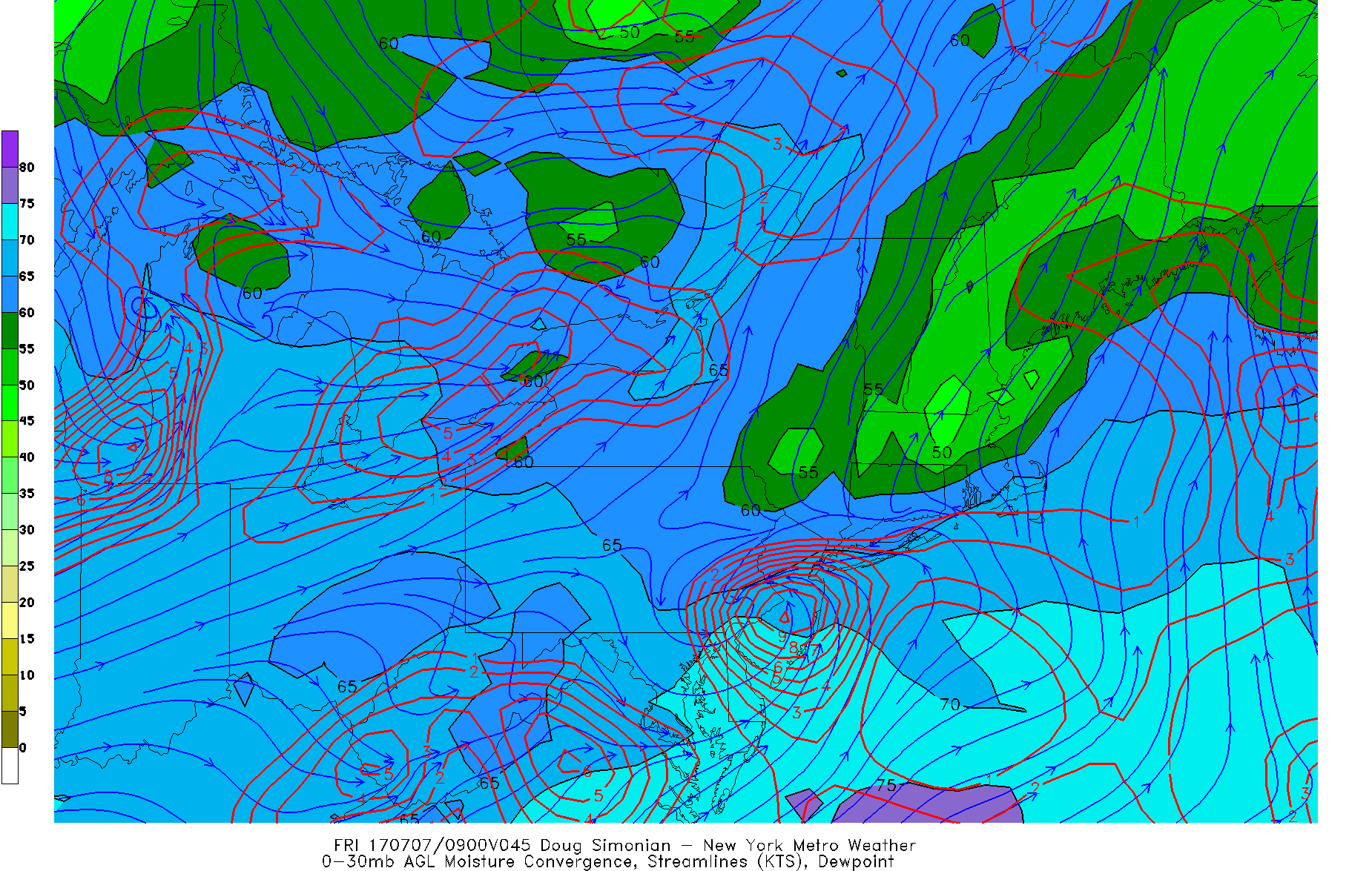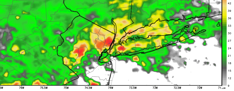 The NAM model showing strong moisture convergence over the region late Thursday into early Friday morning