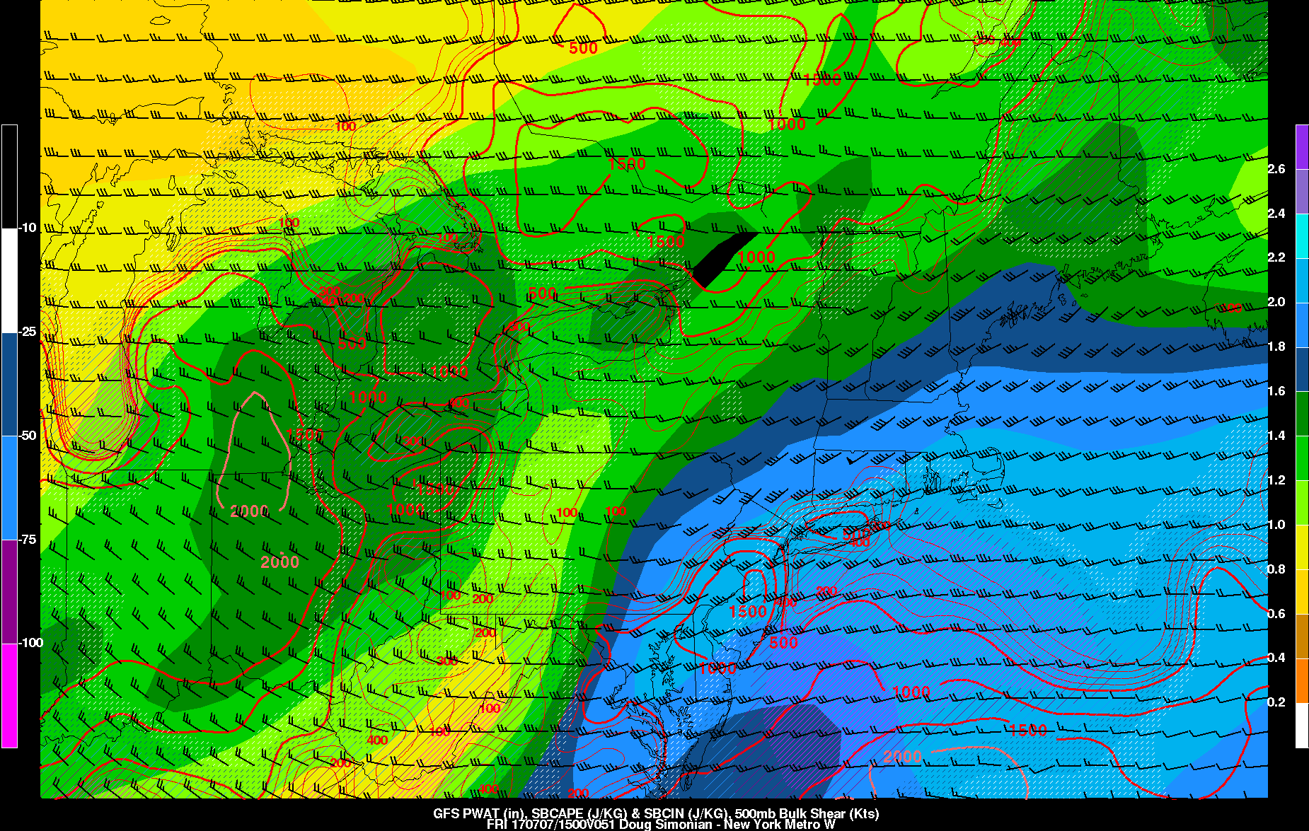 The GFS model showing very high precipitable water values with some instability CAPE by late Friday morning