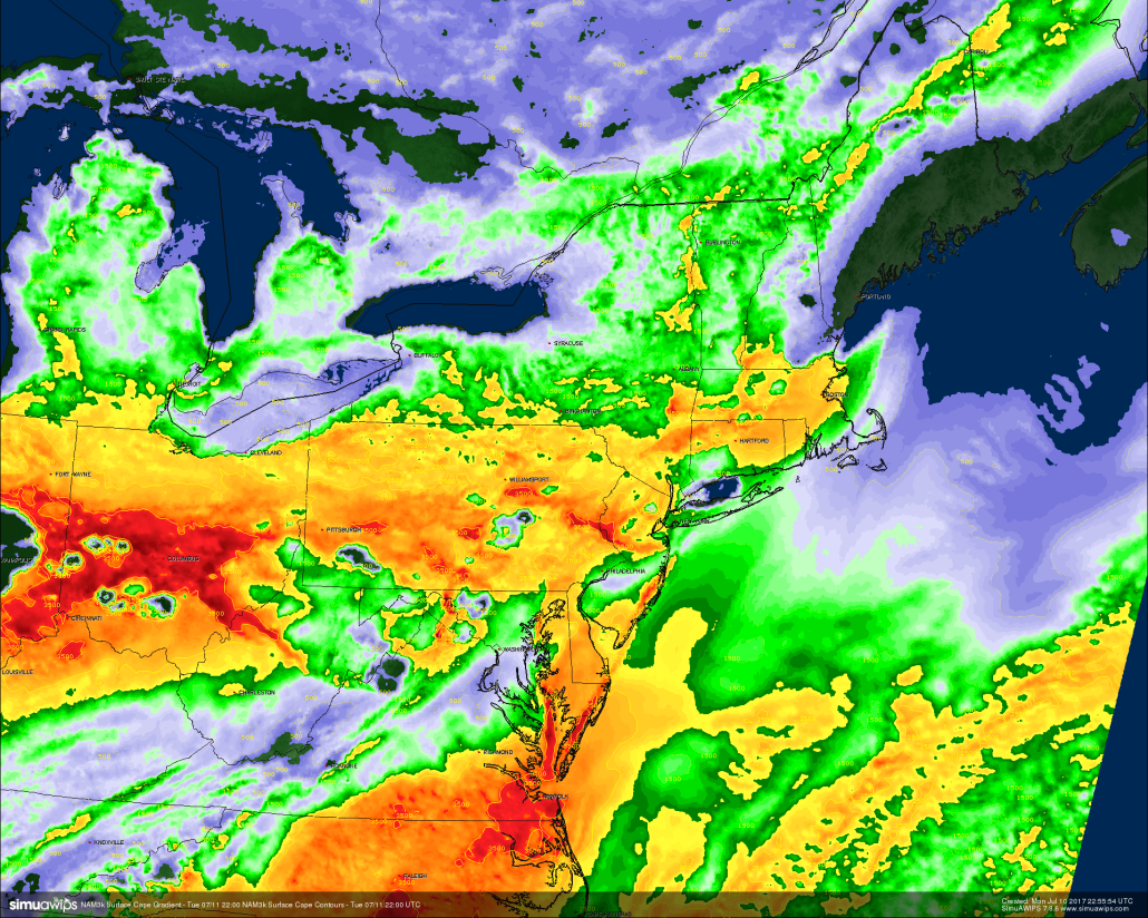 This afternoons NAM model showing the area destabilizing quite nicely after an initial round of showers and storms moving through the area. The situation will have to be monitored closely tomorrow afternoon to gauge the overall threat