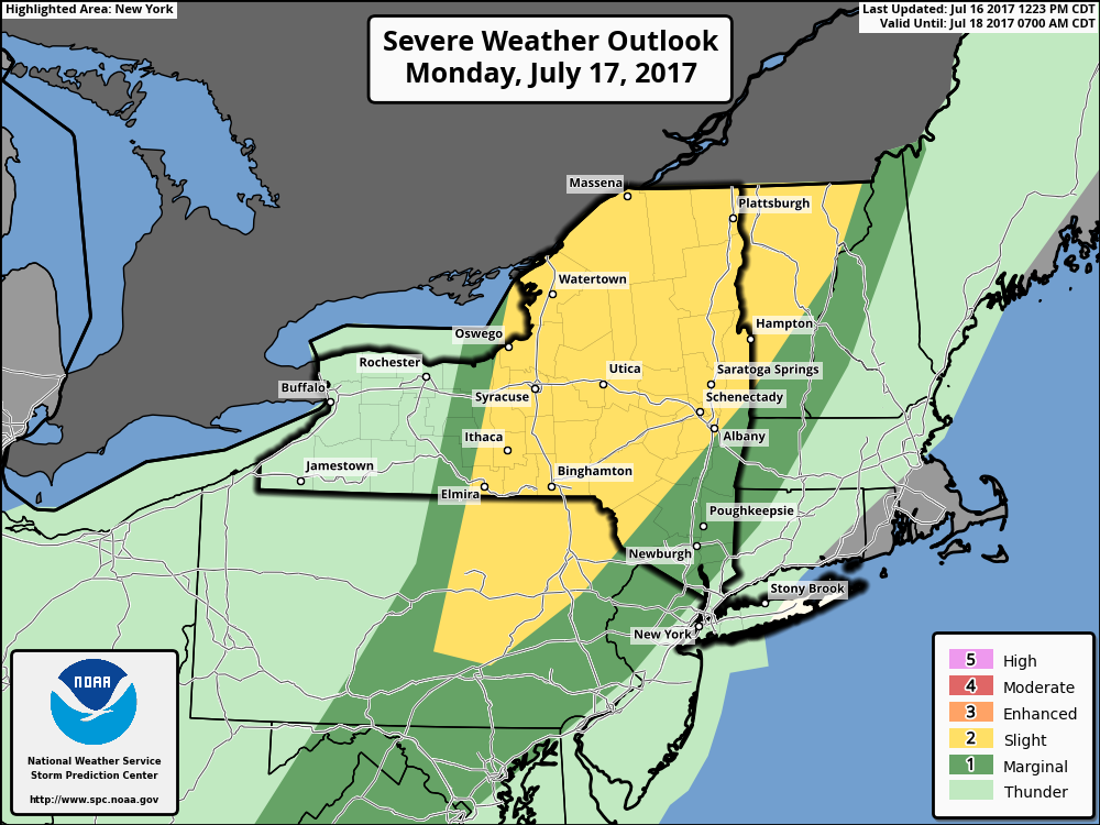The SPC had placed parts of NY State, PA and New England in a Slight Risk for severe thunderstorms today (as of early this morning)