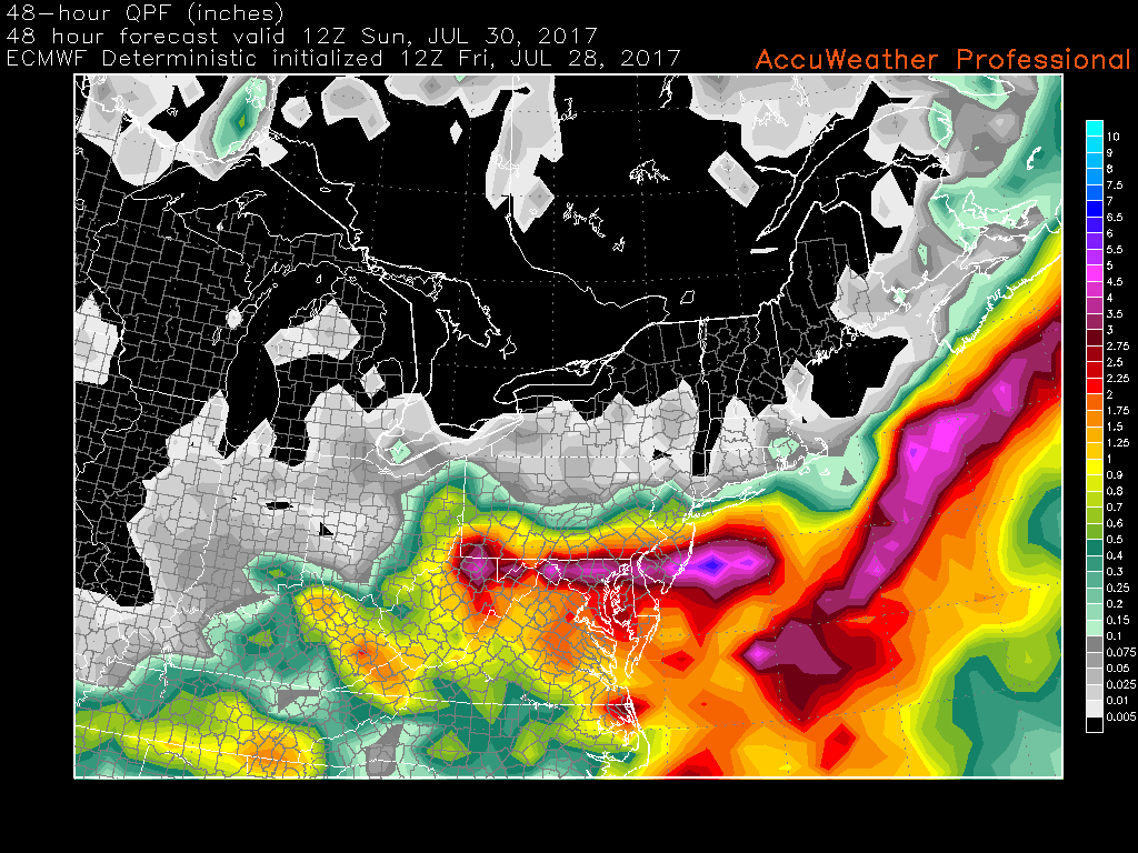 Loop of the development and progression of the heavy rain over the Mid Atlantic over the next day and a half