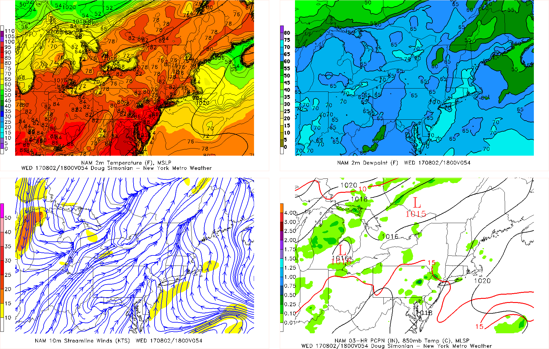 NAM model forecasting very warm temperatures with some isolated showers or t-storms developing during Wednesday afternoon.