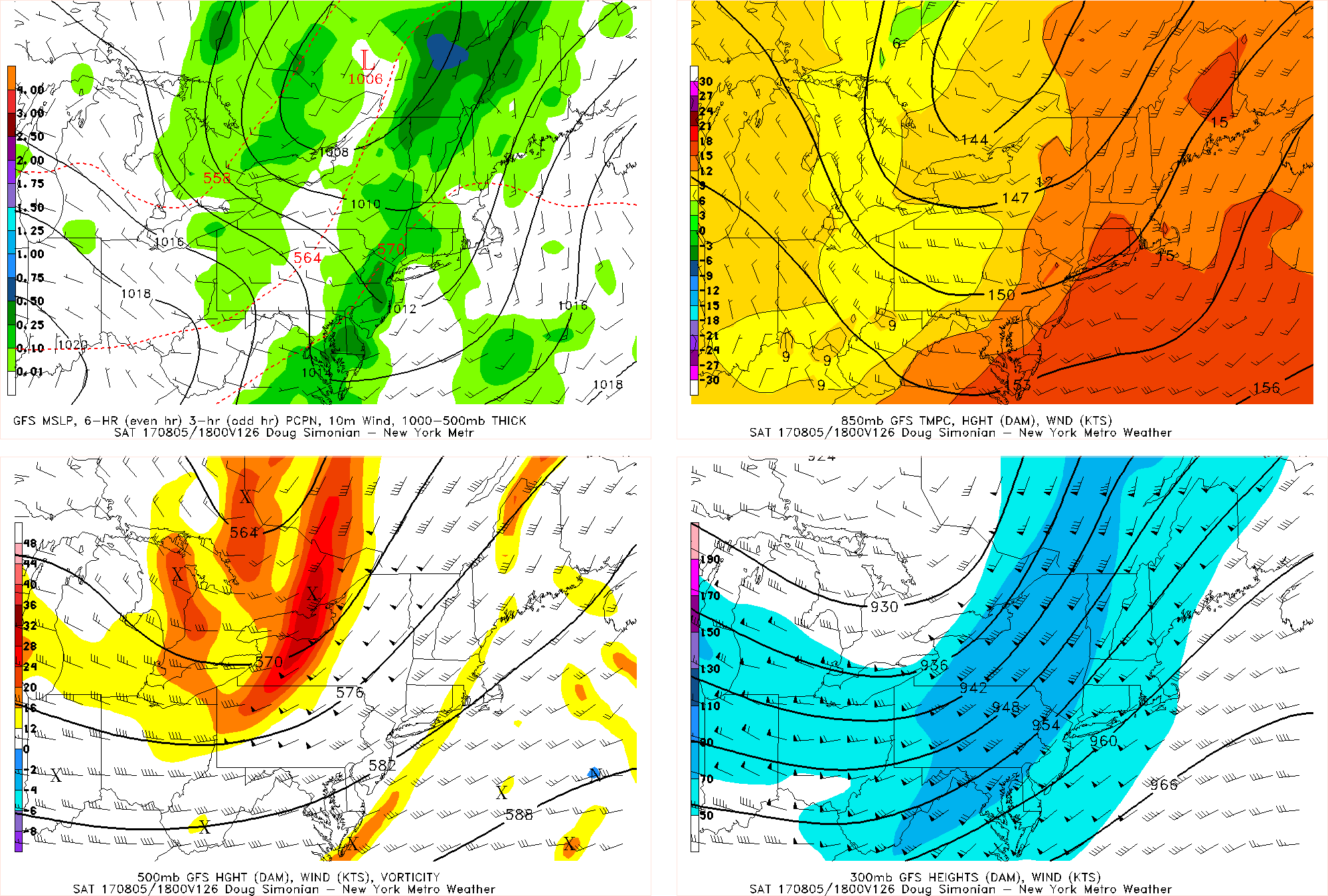 GFS model forecast for Saturday with a frontal boundary associated with a potent shortwave trough and upper-level jet streak moving through the Northeast and Mid-Atlantic regions.