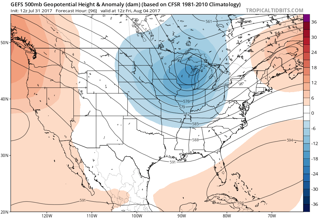 So enjoy another episode of summery weather, as we begin the month of August this week. It will likely turn more dreary again at some point later this week and then some cooler than average temperatures may return for while, by Sunday and early next week. Stay tuned for more premium updates including articles and videos with more forecast details on the thunderstorm potential this week.