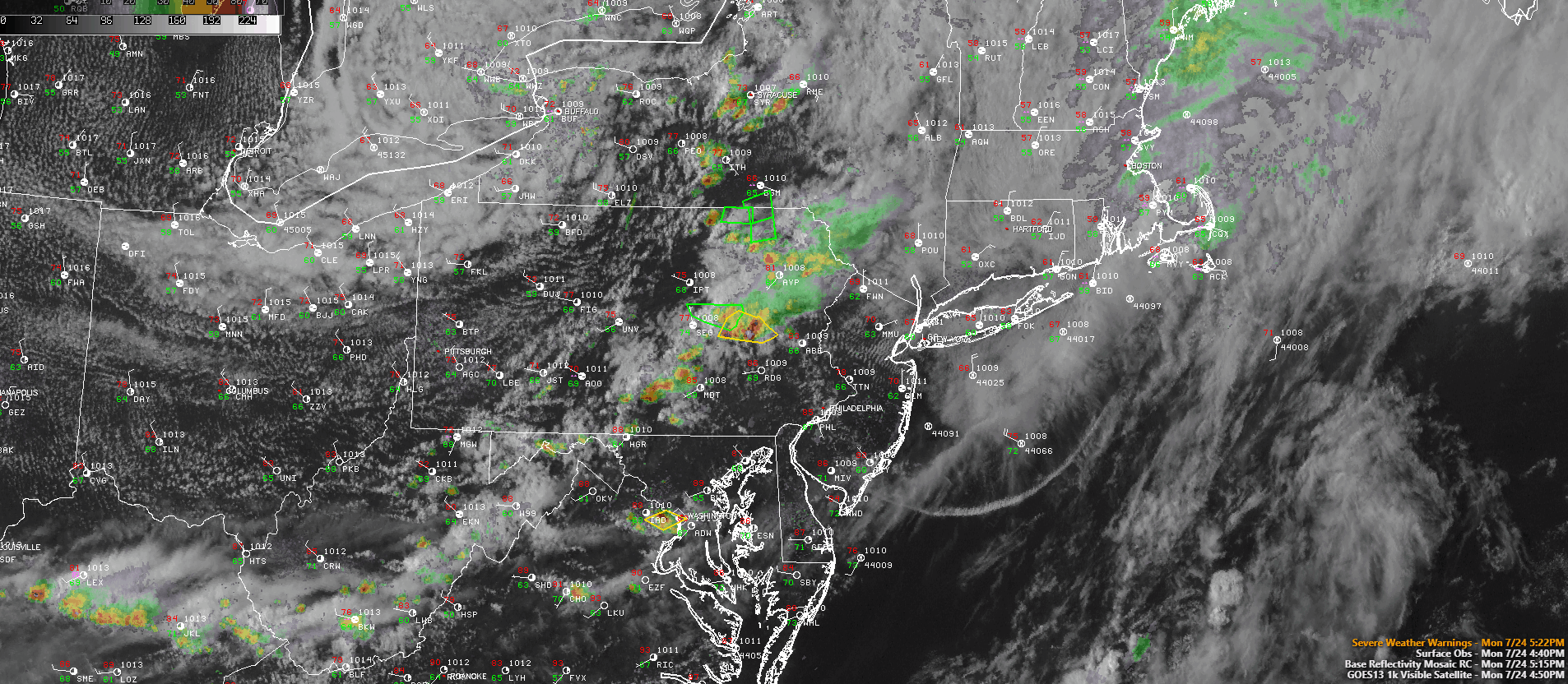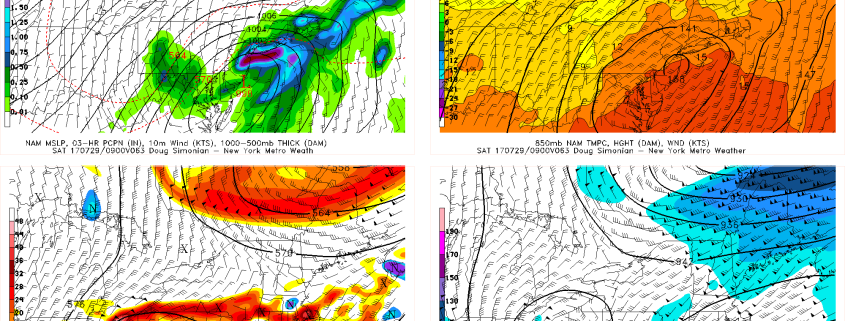 Thursday should start off with mostly broken clouds, with some overcast further inland as the area of high pressure really begins to back off to the east and begins to introduce a brand new moist airmass into the Mid Atlantic and Northeast regions during the late morning and afternoon hours. Additionally, south-southwest flow will also begin to increase markedly ahead of a mid level shortwave that will be located over the Great Lakes region as well as the Ohio Valley. As this south-southwest flow begins to increase, mid level temperatures will begin to increase once again, which should support a round of warmer temperatures by the mid afternoon hours. Despite the possibility of some cloud cover, highs should be able to get into the low to middle 80’s-which will be right around normal for the area during late July. It should be noted that some influence from afternoon sea breeze activity could work to cut highs along coastal sections tomorrow by five or so degrees. In addition to the increasing temperatures, the dreaded dewpoints will once again be on the rise tomorrow afternoon-with values ranging in the mid 60 to lower 70 range, making for a muggy afternoon tomorrow, reminiscent of the days last week.