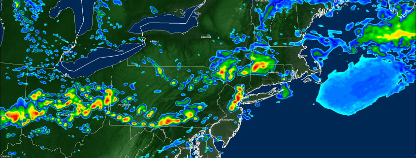 With this increased instability and plentiful moisture trapped in the atmosphere, all we needed today was a little daytime heating to really destabilize the atmosphere. The first in a series of quick-moving shortwaves in a general west to east flow was today’s trigger mechanism that set off numerous strong to severe thunderstorms over portions of southern New England, and even portions of Connecticut. These storms were mainly very heavy rain producers as the atmosphere did not have enough energy in place to keep the significant amount of moisture lofted within the low to mid levels of the atmosphere. As the updrafts that held all of this moisture began to collapse, they created very high rain rates, with some nearing close to 2″/hr! As the more robust updrafts quickly collapsed  and the rain cooled air rushed to the ground, this created localized instances of wet microbursts, which were the cause of some tree damage in Connecticut.