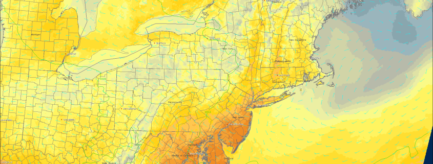 Good morning and Happy Monday to you all! As you make your way out the door this morning, you’ll notice a change to the sensible weather conditions in place throughout the majority of the Northeast states. You can thank a strengthening south/southeasterly flow for that — it has replaced the cooler, northwest breeze with a warmer and slightly more humid airmass. Warmer and more humid air will advect into the Northeast states for the remainder of today.