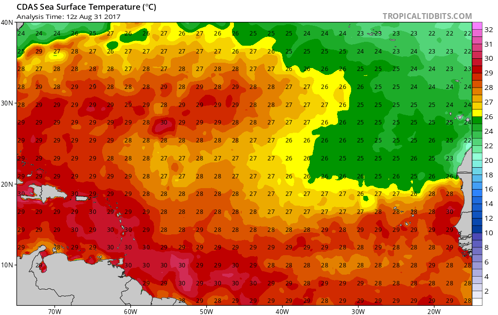 Good evening! After the devastation and catastrophic flooding from Harvey meandering over South Texas and Southwest Louisiana over the past week, we were finally relieved to see that that storm has now moved out of the Western Gulf of Mexico region. Heavy rainfall will continue over the next few days over the Tennessee Valley from the remnants of Harvey, before it becomes absorbed into a frontal system developing over the Northeast. But as we approach the peak of hurricane season, more tropical threats are rising. One such threat is Hurricane Irma which is becoming a powerful hurricane already today.