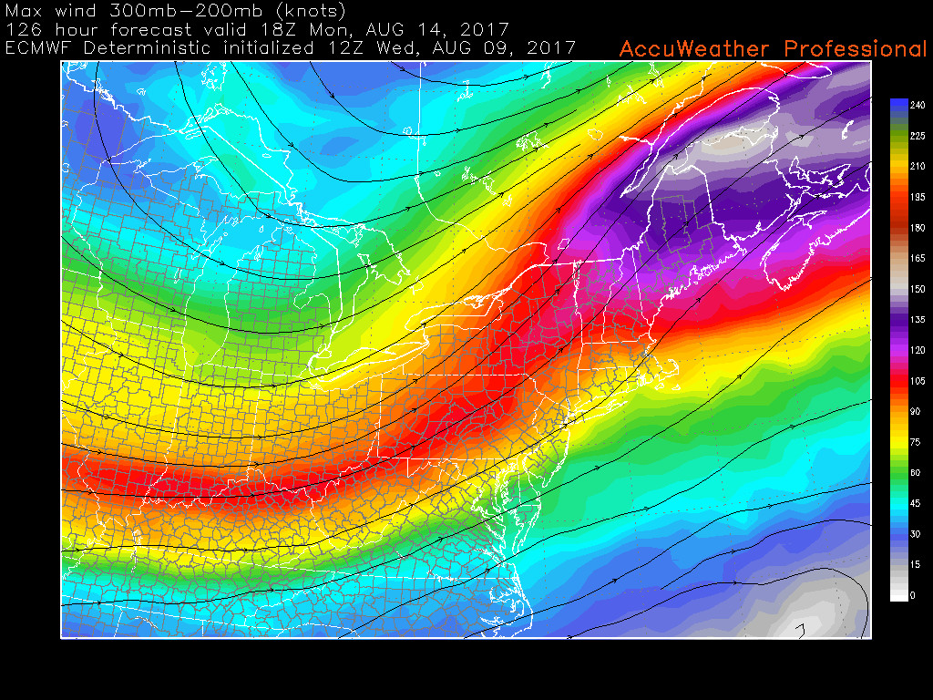 This afternoons European model showing the potential for unsettled conditions starting early next week over the area (Courtesy of Accuweather Pro)