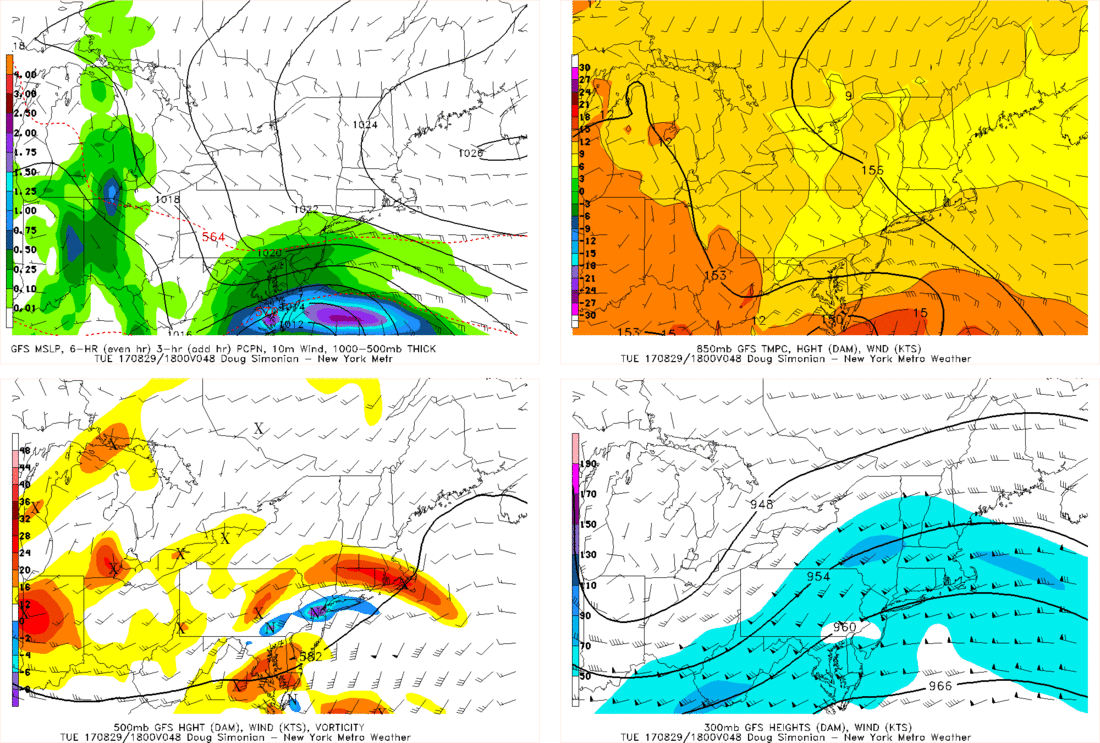 There are significant model differences on the interaction and northern extent of rain, as a sloppier phase between Irma resulting in a broad trough over the Ohio Valley, Northeast, and Western Atlantic would result in a much further east scenario with little to no rain at all. Additionally, if Irma becomes more purely tropical, it may have a tighter core of heavier rain, and thus no significant rain would expand to the Northeast Coast. But a dual-jet streak as shown by the GFS (linked above) is usually a signal for at least some precipitation. A further west scenario would also lead to a solidly heavy rain and wind event for the Southeast New England Coast.
