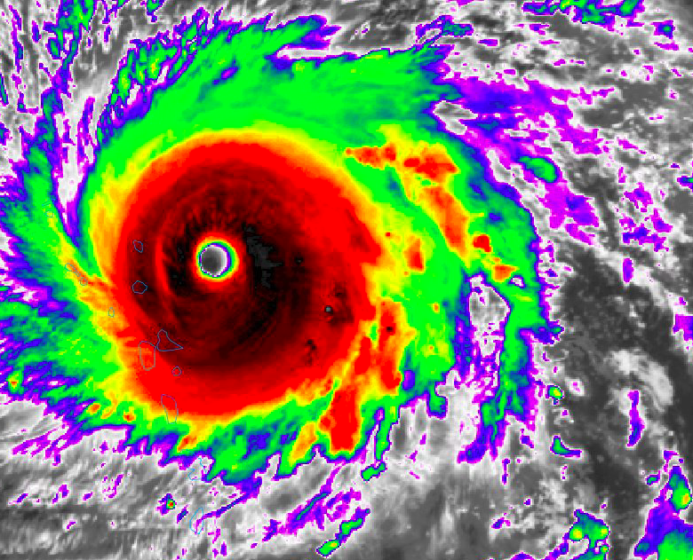 Hurricane Irma, a powerful Category 5 with 185mph winds, as of 9:55pm Eastern on September 5th 2017.