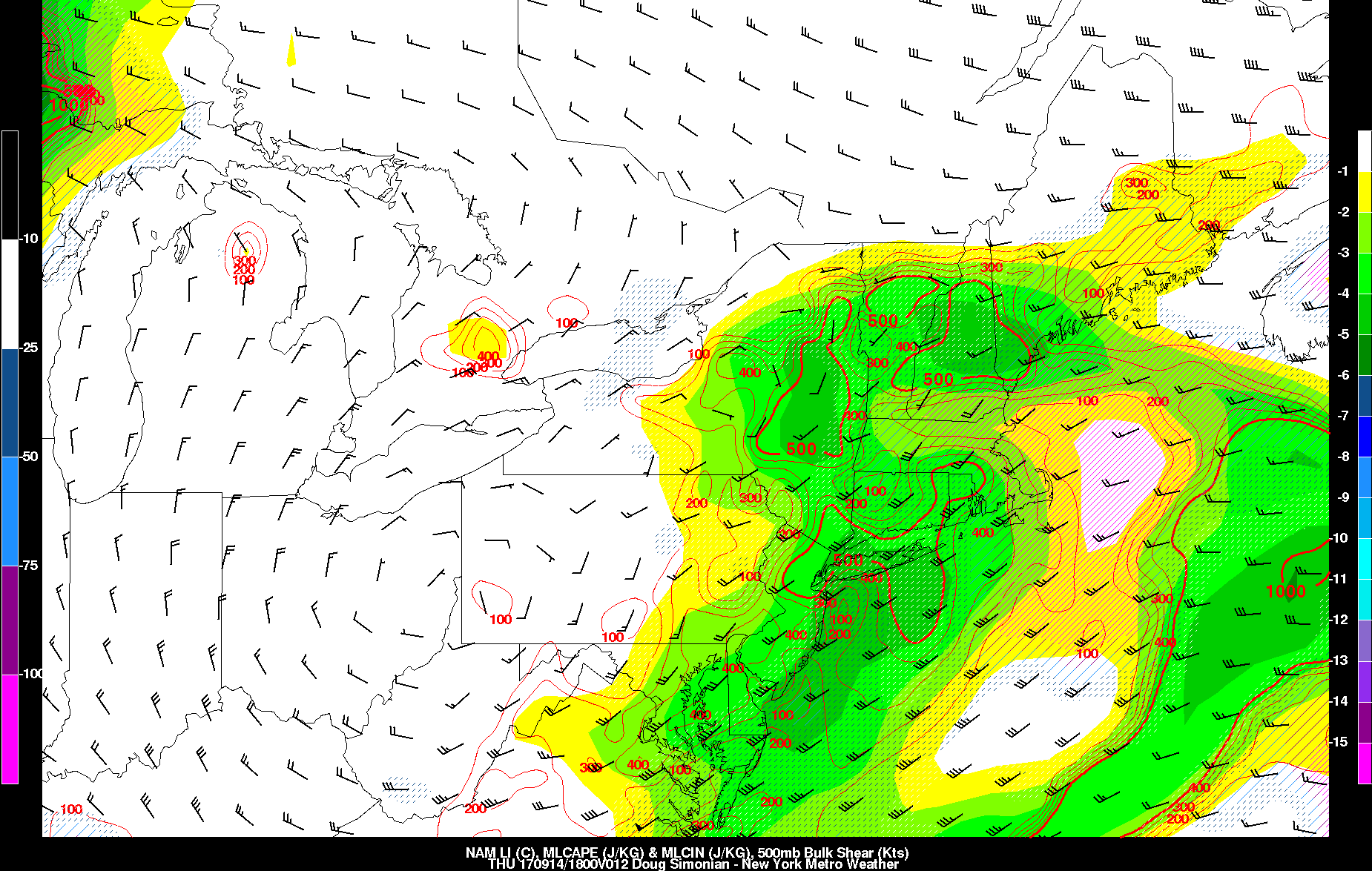 But latest models indicate some pockets of higher instability of MLCAPE 500-1000 J/kg and 700-500mb lapse rates 6.5 to 7.0 C/km along with 25-35kts of 0-6km bulk/effective shear, as a cold-pool aloft moves through the Northeast. So a few isolated strong thunderstorms are possible with some gusty winds or small hail, especially over the Interior this afternoon. Precipitable water values near 1.50″ may support some locally heavy rainfall in spots. But a moderate mid-level west-southwesterly flow should keep any convection moving along today. So no significant flooding hazards are anticipated. There is some concern that cloud cover may hinder instability for stronger convection. Also closer to the coast, more stable marine influence from southerly flow should reduce convective threats.