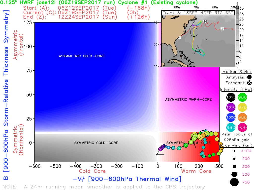 Jose also appears to be loosing some tropical characteristics and becoming more of a powerful Nor’easter, over next few days. But it continues to maintain a compact, warm inner core, with very heavy bands of rainfall and stronger winds at least gusting to hurricane force.. This northern part of this core may clip parts of Southeast Massachusetts, especially around Cape Cod, Martha’s Vineyard and Nantucket. These areas more likely experience true tropical storm force conditions, with more sustained wind between 35 to 45mph and gusts as high 60mph possible. Thus, tropical storm warning have been issued for these areas. But overall this storm, won’t be any worse conditions than a typical Nor’easter for these areas as well. The airmass is also too stable to support any heightened tornado threats.