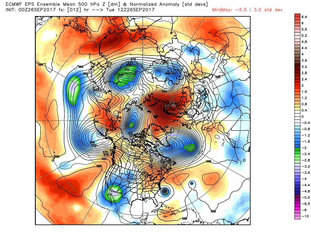 As atmospheric angular momentum rapidly decreases and the tropical pacific begins to have a larger effect on global circulations, the hemispheric pattern will undergo a “snap back” reaction. Troughiness is again expected to build into the West/Southwestern United States during the early days of October. This will gradually allow another large, sprawling ridge to build into the Central and Eastern US.