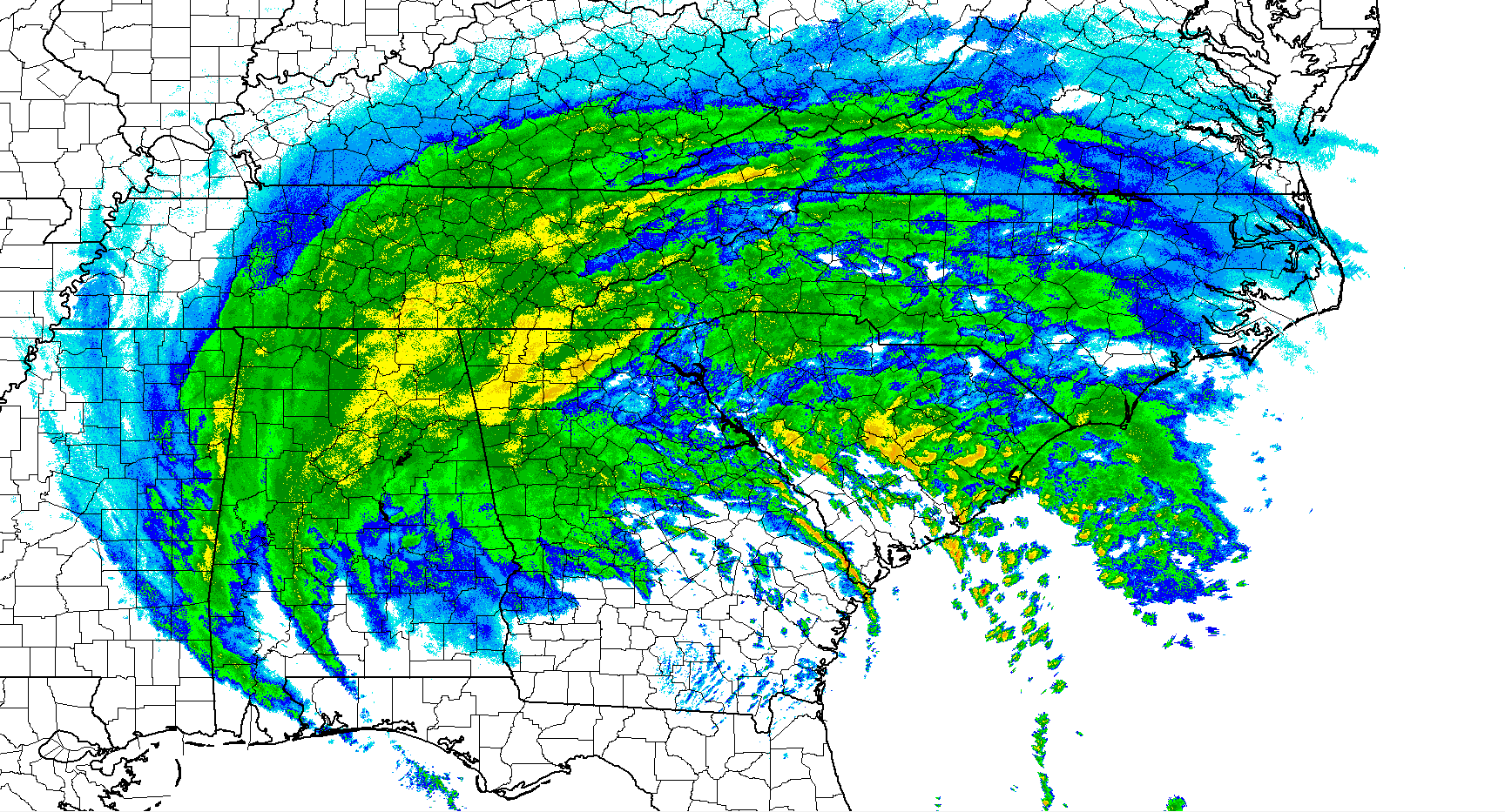 Hi-res Base Reflectivity imagery of the remnants of Hurricane Irma over the Southeast US