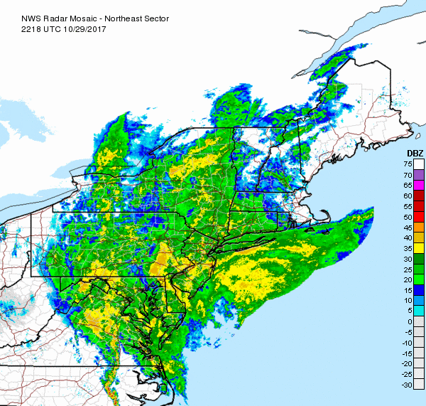 Sunday nights radar near the peak of the coastal storm that brought heavy rains and high winds over the region