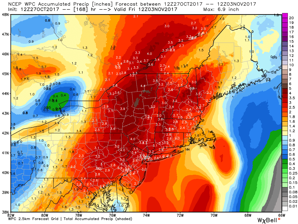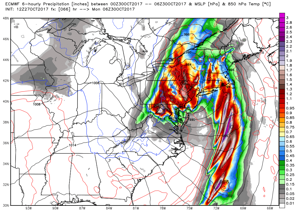 The storm that bombarded portions of the Northeast over the past day is quickly moving out over eastern Canada, but the storm certainly left its mark. Most of the Northeast saw heavy rainfall totals in the range of about 2-5″, but the main event from this system were the winds that roared in overnight last night. As the low pressure area rapidly deepened and moved ashore over NJ and eventually progressed into New York state, it carried a large an impressive area of high winds just above the surface over portions of Long Island, Connecticut, Rhode Island, Massachusetts, Vermont, and Maine. As the storm began to fill in with warmer air and weaken, these winds just above the surface were able to rapidly crash down to the ground and cause an impressive amount of tree damage. Hundreds of thousands of folks are still without power in many of the states above, with over 400,000 customers without power in Maine alone. While these winds were rather impressive, the main story west of the immediate area of low pressure were the torrential rains that fell. Deep tropical moisture streamed northward into the Mid Atlantic and Northeast states, and when this moisture was met with the strong dynamics aloft, heavy rain became focused over New Jersey and portions of New York for several hours. Some locations were able to rack up rain totals in the 4-5″ range when all was said and done, with some minor street and river flooding noted. As we stated last week, the reason that these rains were not a bigger story was because an existing minimal drought muted out the overall impacts.