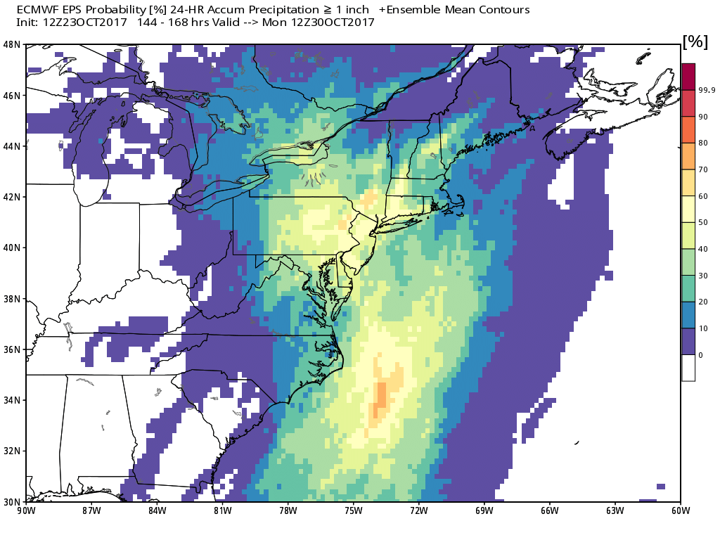 This afternoons European Ensembles already showing a high probability of 1″ or greater of rain for this weekend