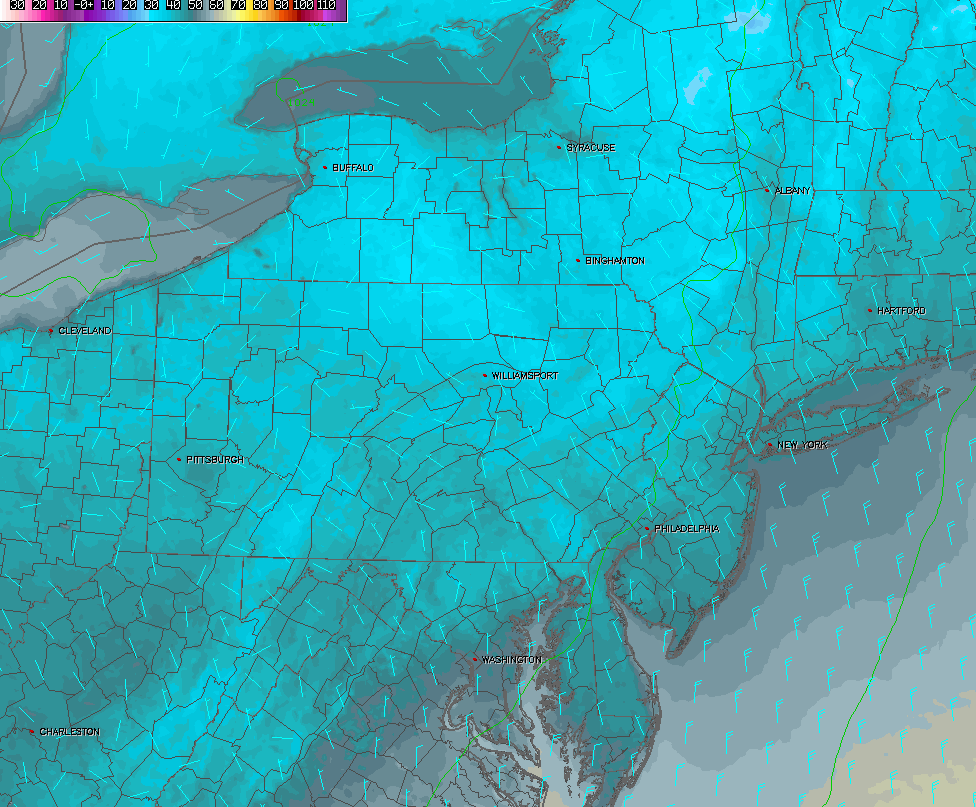 As we head into sundown, gusty conditions will likely remain in place for most of the area, except for portions of central Pennsylvania and western New York. The cirrus deck that has been in place most of the day will continue to diminish over the next few hours and head off to the east as the upper level trough continues to lift out. This will allow for skies to become quite clear this evening, and with low humidity, clear skies, and diminishing winds, we will have at least marginal conditions in place for radiational cooling to take over. Temperatures will likely fall into the “cold” levels this evening as lows dip down to the upper 30’s and lower 40’s for the immediate NYC metro area. Further north and west, lows could get into the low to middle 30’s, which could cause patchy frost to develop in the areas that see the wind really calm down over the next few hours. The NWS has issued numerous Frost advisories over the Northeast, so make sure to bring in any plants that may be vulnerable to frost conditions this evening.