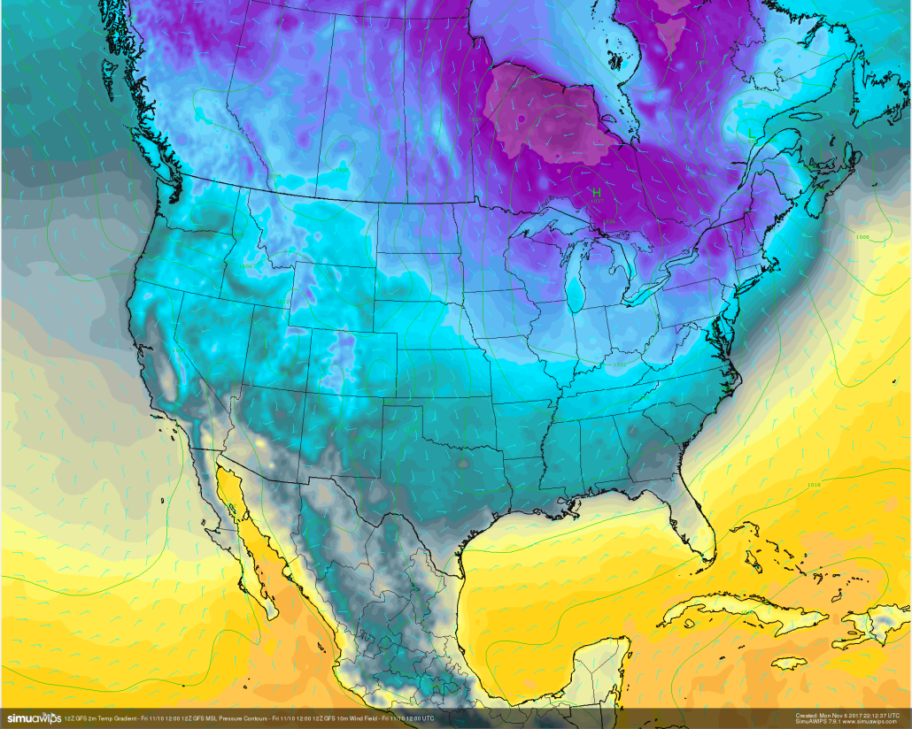 This afternoons GFS model showing a very impressive cold shot blasting through the Northeast on Friday and into Saturday morning