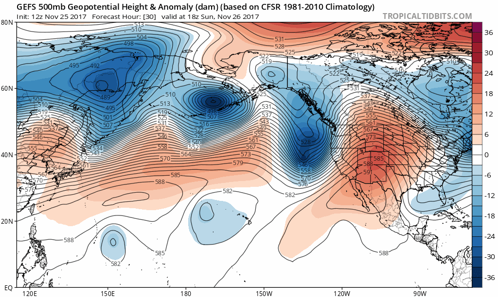 It is important, at this juncture of the forecast, to take a bit of a step back and understand where we are. While the evolution of these things seems to be 10-15 days away (really, the potential for anomalous cold or storminess still is) the wheels are already in motion. Refer back, for a moment, to the North Pacific Ocean graphic. Carefully watch the westward retrograde of higher than normal heights in the arctic, and the eastward movement of the short-circuit wave train over the Pacific Ocean.