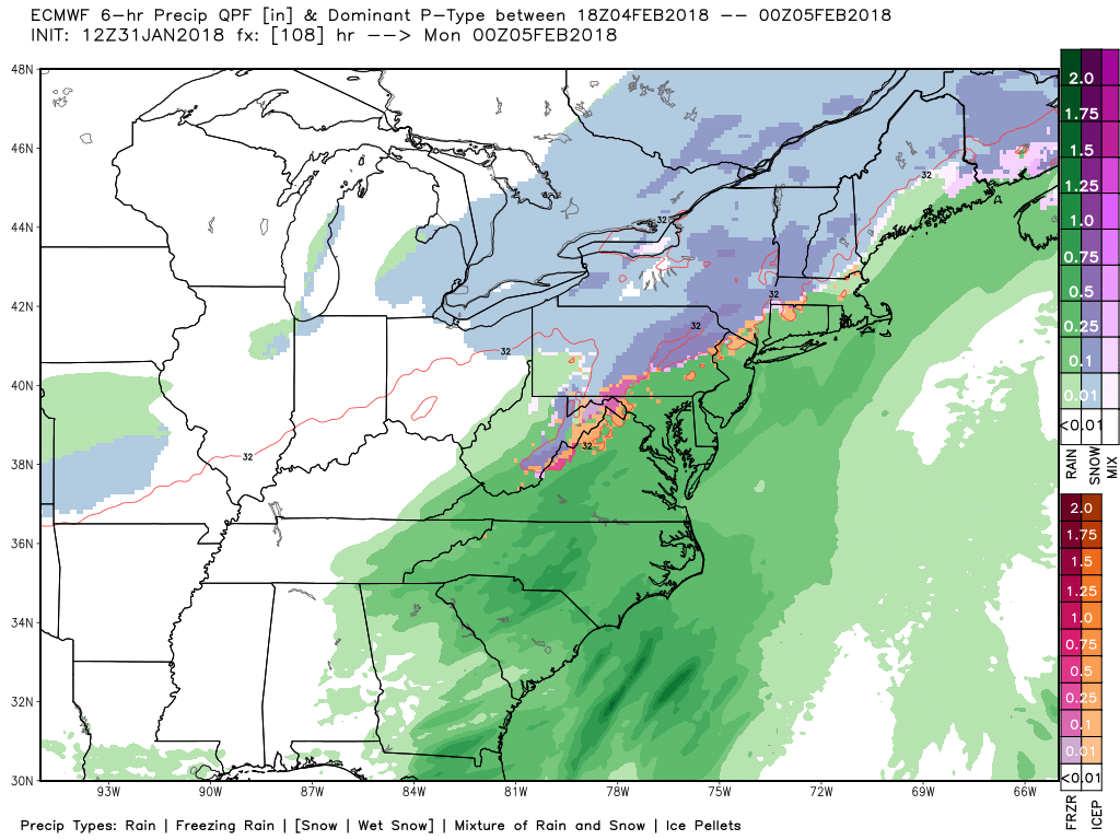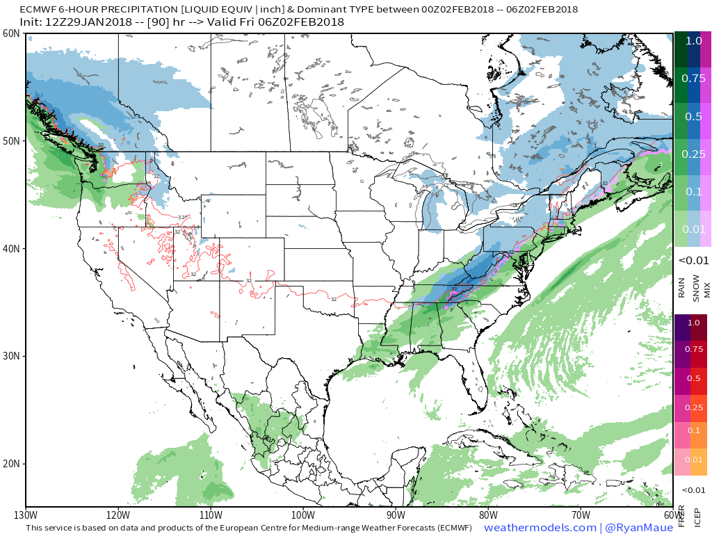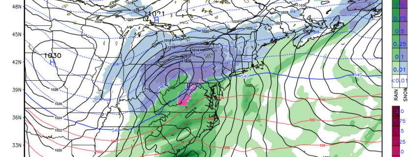 Thursday will likely start off cold, but rather cloudy across the majority of the Northeast as stout southerly flow continues to pump in and over the region. The majority of the day should be generally quiet as we await the passage of a weak cold front that will be moving in from west to east over the area. Ahead of this front temperatures will likely rise above freezing by the mid afternoon hours, with highs likely getting into the lower to middle 40’s across much of the Northeast. Some light rain showers will be possible over southern portions of New Jersey and Pennsylvania tomorrow afternoon as low level moisture continues to increase. The best chance for precipitation will come towards the late evening hours as all levels of the atmosphere become saturated as the front briefly interacts with some residual moisture off of the Mid Atlantic coast. Temperatures will be above-freezing to start off, but this afternoons model guidance has become a little more bullish in showing sub-freezing temperatures arriving just a little after the mid-way point in the precip. Areas from west to east should see a rather gradual shift from rain to snow, with some light accumulation possible. Trace amounts are expected, but 1-2″ cannot be ruled out in some of the higher terrain. The main threat with this front will be any untreated roadways quickly freezing over as temperatures quickly drop behind the front.
