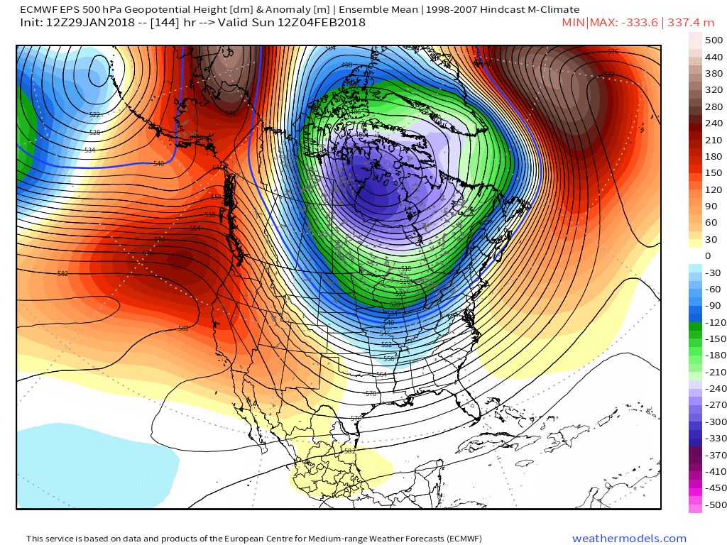 Surface high pressure will continue to dominate the weather over the east coast on Saturday with clear skies and cold temperatures. Highs will likely be a couple degrees warmer than Friday, but still in the middle 20’s to lower 30’s across the entire Northeast. As we head deeper into the day on Saturday, the bigger story becomes focused on energy diving into the Plains states as our high pressure begins to retreat to the east. As the high leaves us, southerly flow will begin to overspread the region as a low pressure begins to form over the Ozarks. Temperatures will begin to rise steadily on Sunday as the low pressure system approaches from the southwest, leaving the majority of the Northeast above freezing. At this time, it appears likely that precip will start later in the afternoon on Sunday, becoming rather steady by the evening hours. As of right now, this setup does not look to be supportive of widespread snow at all due to the lack of a high pressure to the north to provide some kind of cold. Additionally, this system will be moving very quickly as the mid level energy remains broad and disorganized. For now we expect mainly rain on Sunday, with the possibility of a changeover towards the end of the evening. We will continue to monitor the progress of this system carefully over the next couple of days and provide updates when necessary!