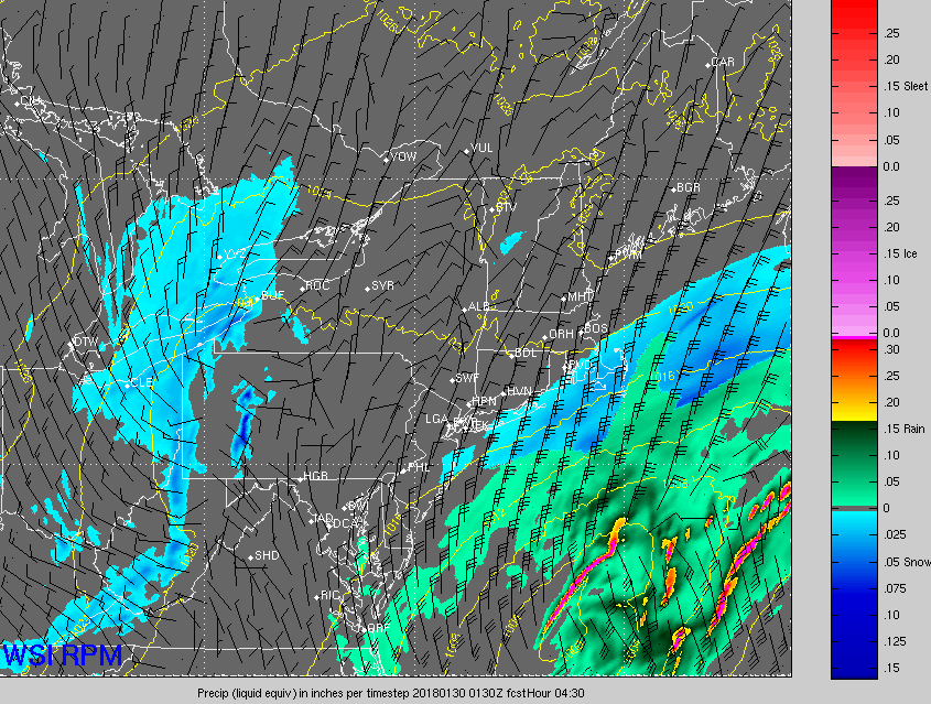Today has been a rather cold and typical winter day across the entire Northeast after the system that impacted the region on Monday left some fresh snow cover for eastern locations. A large area of energy associated with the tropospheric polar vortex has been meandering just to the north of the Northeast, which has allowed for some light snow flurries to break out earlier this afternoon and into this evening. These flurries were mainly confined to the northern sections of upstate New York and portions of northern New England as moisture and forcing was rather meager with this system. Regardless, some limited moisture in the middle to upper levels of the atmosphere allowed for some spotty clouds to break out during the afternoon hours. Despite the peaks of sun during the day, high temperatures were pretty cold across the entire Northeast, with most of the New York metro area seeing readings stay in the upper 20’s to lower 30’s. Locations to the north and west were a little colder, with highs in the lower to middle 20’s. Calm and cold conditions will last through the evening and into the overnight hours tonight as an area of high pressure located to our south exits off the Mid Atlantic coast. As this area of high pressure moves to the south and east, surface winds winds will begin to shift to a more southerly component as mid level winds turn to the southwest. This mid to low level flow will allow slightly warmer mid level temperatures to work in from the south, allowing surface low temperatures to only drop into lower to middle 20’s for the vast majority of the region. The increased southwesterly flow will also allow for more mid to high level clouds to take over as the night progresses.