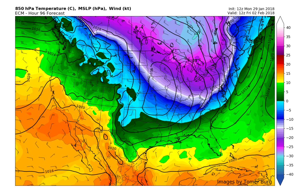 This afternoons European model showing light to moderate mix precipitation breaking out over portions of the Mid Atlantic and Northeast on Thursday night.