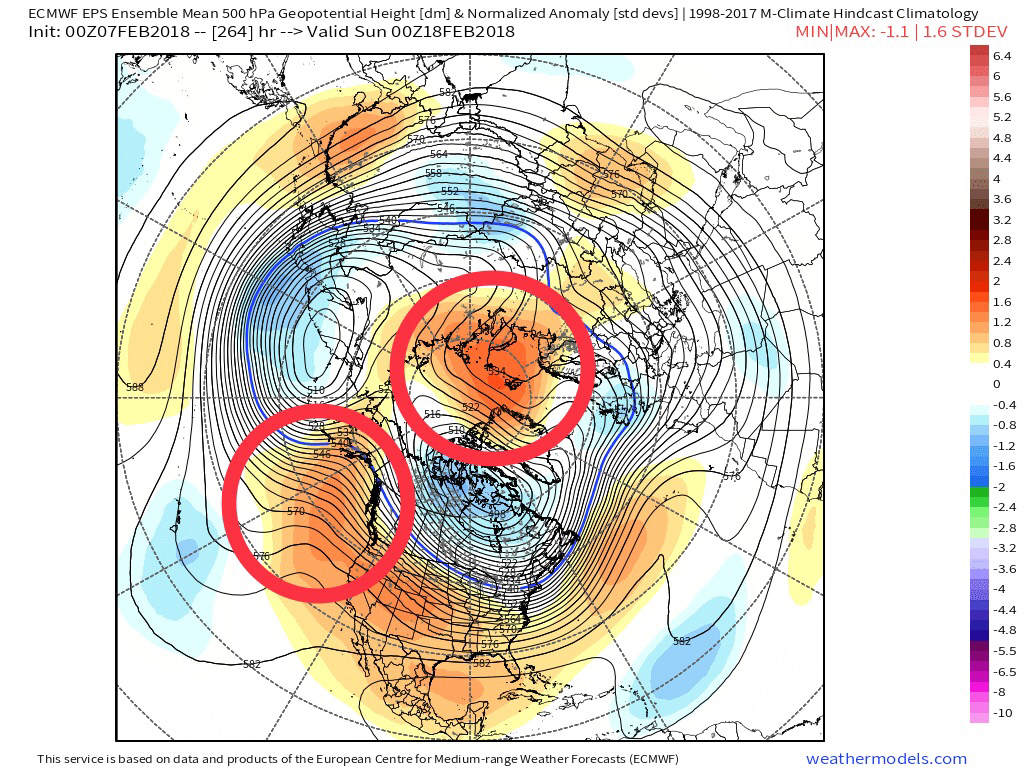 One of the main concerns and uncertainties moving forward into the latter part of February will be the high latitude blocking itself; how strong will it become, where will it develop, and how long will it stay in place? While we know its development is favored, it will take a few more days before the aforementioned details come in to focus. All eyes in North America will be on the Pacific and Atlantic high latitude regions – particularly the Atlantic, which can have a huge effect on the weather pattern if the development of a -NAO does occur.