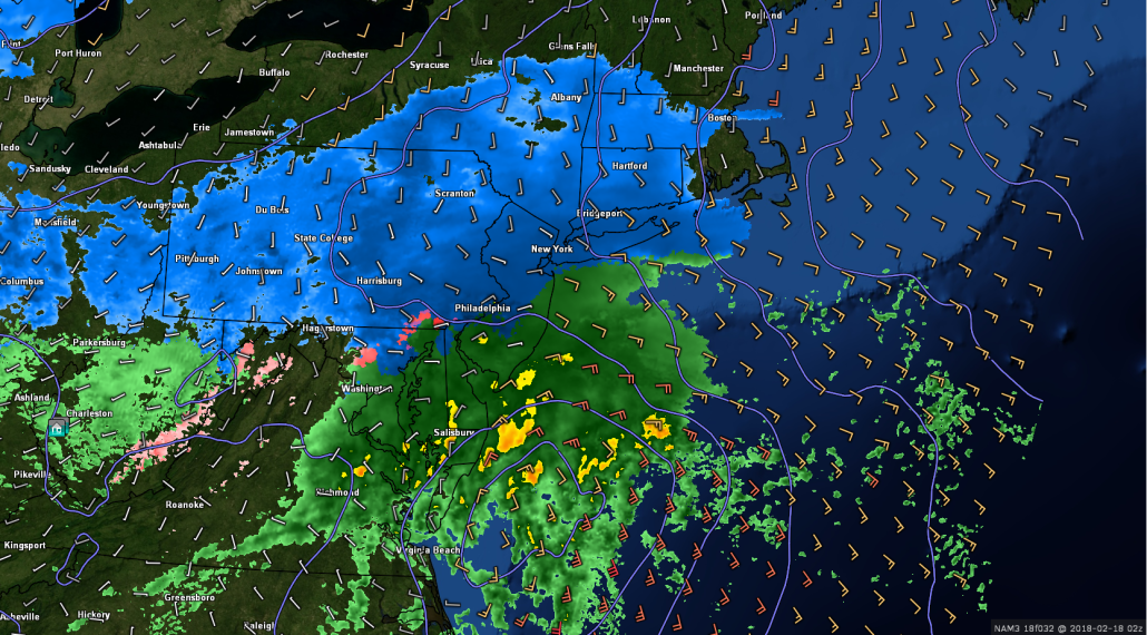 As the mid level energy begins to strengthen tomorrow evening, we will also see the upper level jet streak associated with this system begin to expand, allowing precipitation to break out farther north into portions of the Mid Atlantic by sunset. Surface low pressure should then begin to develop over the Mid Atlantic coast tomorrow night, with snow quickly expanding from southwest to northeast over the Northeast. This afternoons model guidance still shows a reasonable amount of uncertainty with the strength of this system, which will be crucial to this forecast. Depending on how deep this low gets will determine how much dynamic cooling will take place as the precipitation is falling. A weaker storm will be warmer at the surface with less precip, and therefore less snow. A stronger system will be able to overcome marginal surface temperatures and have increased snowfall rates, yielding higher snow totals. At this time, a healthy compromise of the two seems plausible. Precipitation may start off as a mix of snow and rain over southern portions of the Northeast, but should turn to all snow by 8-10pm or so with the exception of immediate coastal areas. The snow will quickly become moderate to heavy over portions of Pennsylvania, New Jersey and New York, with an enhanced chance at mixing over Long Island due to easterly winds. Moderate to heavy snow should continue through the overnight hours, likely until 3-5am as the system quickly accelerates to the north and east and moves offshore. Totals will likely vary by location and elevation over the region, but right now we expect a general 3-6″ from southeastern PA through northern NJ, and into SNY and CT. Portions of Long Island may see less than shown here due to prolonged periods of mixing. Travel conditions will likely be quite hazardous if you plan on driving tomorrow evening, so please stay up to the date with your local NWS for any watches or warnings in your area!