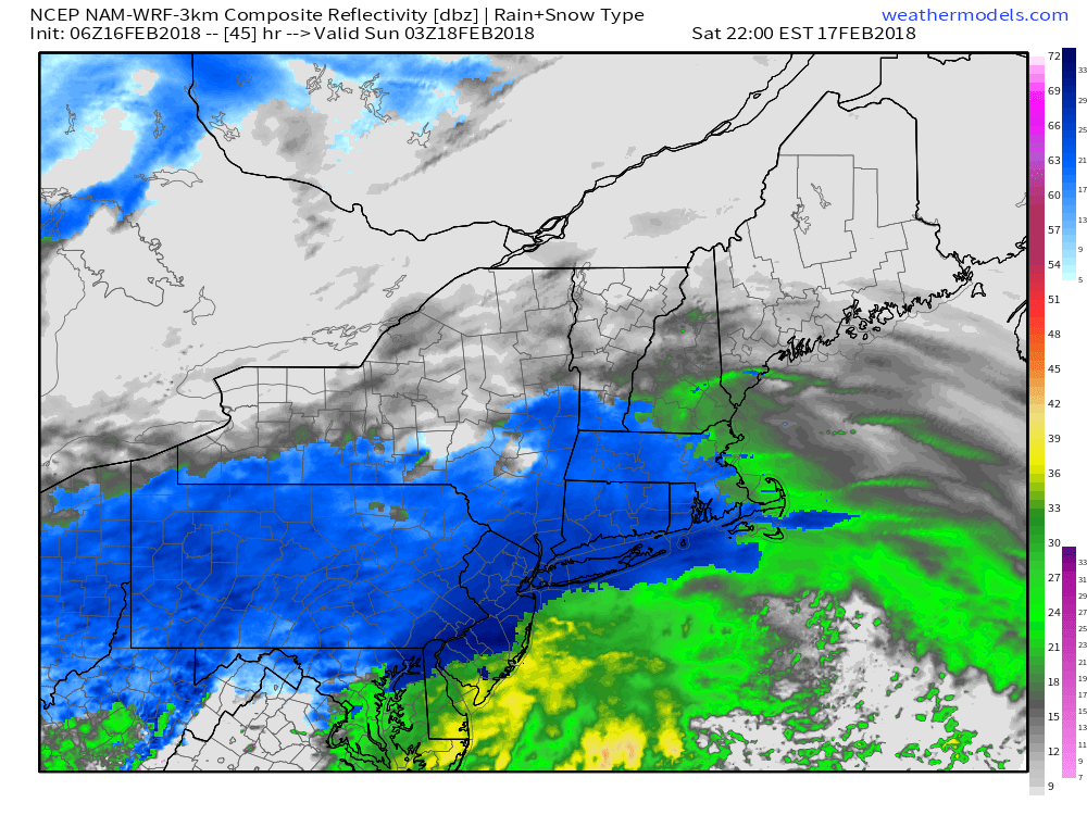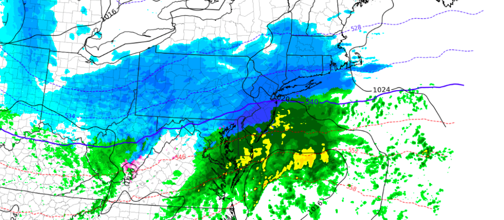Precipitation type remains a significant concern and uncertainty (what else is new), and this is especially true to the south and east of the major cities (i.e, Long Island, New Jersey Shore, etc). Here, warmer air will remain entrenched at the surface – and the lack of a true cold air source or high pressure will make it difficult for snow to fall for a long period of time.