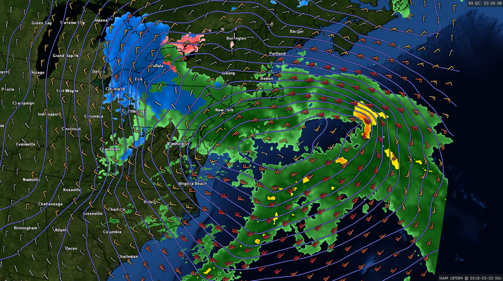 This afternoons model guidance continues to show the potential for the primary low pressure system that travels over the Ohio Valley to redevelop just off the Mid Atlantic coast early Friday morning, but there are still a large amount of uncertainties with this forecast. Regardless, what we do know is that an area of blocking will be located over Greenland, which will act to slow down the mid level system and allow it to strengthen as it nears the coast. This should lead to the development of a strong low pressure system adjacent to the Mid Atlantic coast during the day on Friday, likely leading to a wide range of impacts. Almost all of the model guidance shows an impressive swath of winds just above the surface with this system due to a tight pressure gradient. Additionally, this system will be capable of tapping moist air from the south, so it will likely have a good amount of moisture to work with, leading to the development of widespread moderate to heavy precipitation. Lastly, winds out over the ocean will likely be directed towards the coast, which will create at least a moderate threat of coastal flooding as we enter a full-moon phase. One of the main things we do not know at this time is exactly when and how much phasing will occur with the two original disturbances over the Ohio Valley. A quicker phase would lead to a stronger coastal low tucked right along the coast, while less/delayed phasing will likely lead to a weaker and more elongated system.