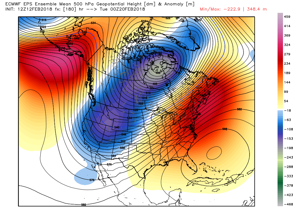 The same pattern looks to almost certainly continue through this weekend as the southerly flow increases once more on Friday ahead of a large area of disorganized energy out over the Plains . A more moderate rain event may be in the cards starting on Friday as more Gulf moisture becomes available over the South. A cold front behind this system looks to temporarily cool things down a bit late in the day on Friday, but Saturday looks to still be a slightly above normal day across the East as mid level ridging starts to buil over the Plains once more. This area of ridging looks to strengthen quite a bit over the east on Sunday, allowing high pressure to get pushed off of the east coast and provide strong southerly flow once more for the entire area. This looks to set the stage for an even larger warm-up next week as some models are depicting a very deep trough to set up in the west, which would be strongly supportive of much above average temperatures lasting through the week next week. In fact, this afternoons European model had many locations across the Northeast well into the 70’s by next Thursday! This can very easily change over the next couple of days, but we will continue to monitor this period of prolonged above normal temperatures!