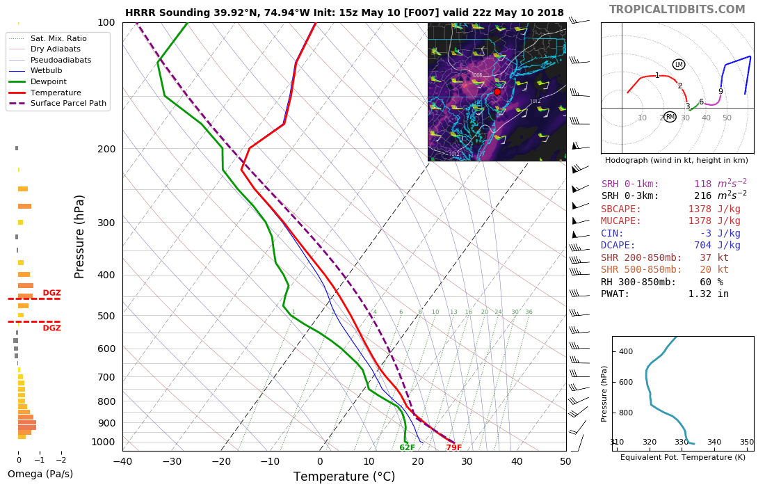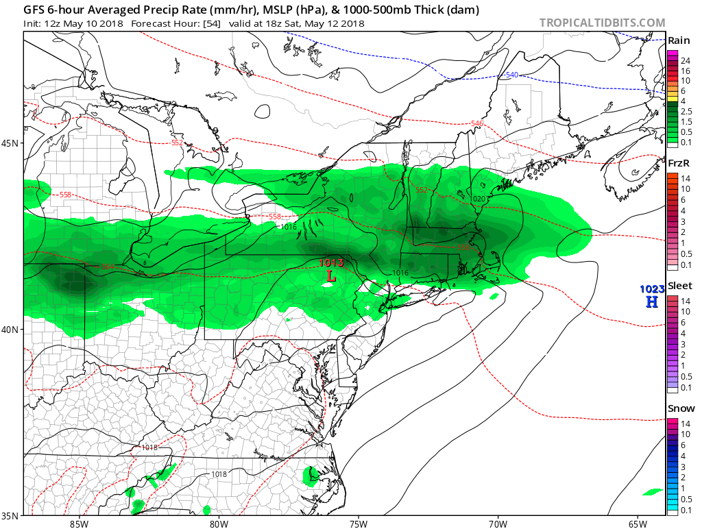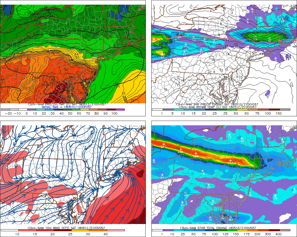 NAM model showing the warm front over South-Central New Jersey after convective complex moves into New England later Saturday afternoon