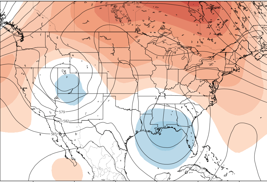 Meanwhile, a weather disturbance over the Northwest Caribbean may organize into a tropical system, as it moves into in the Gulf of Mexico late this week. Most model guidance currently keeps this system over the Southeast US with some heavy rainfall through early next week, as a shortwave troughs mostly bypasses it to the north. But if this disturbance organizes into a stronger tropical system, it may enhance more ridging to north, forcing the cold front to stall somewhere over the Northern Mid-Atlantic region. This may lead to more showers and thunderstorms in the region on Memorial Day Monday. But uncertainty is still high regarding these details, due to it still being six days away, along with the complexity of the pattern.