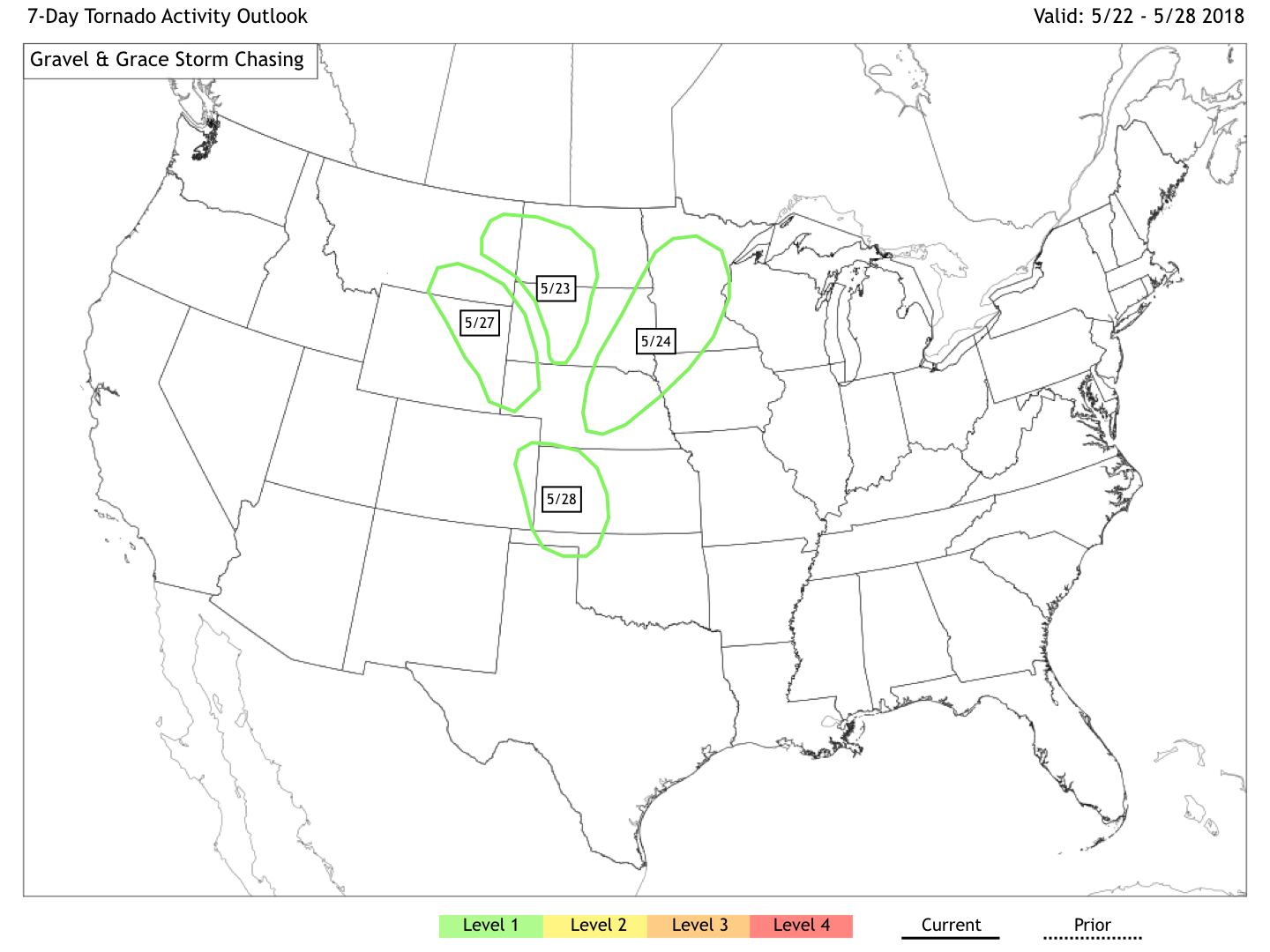 We’ve highlighted the next week of tornado potential on our map below – something we’re excited to debut. Our hope is to begin with weekly outlooks and target days in advance, and then hone in on them as we get closer. We’ll be updating these over the next few days as we get closer to our arrival!
