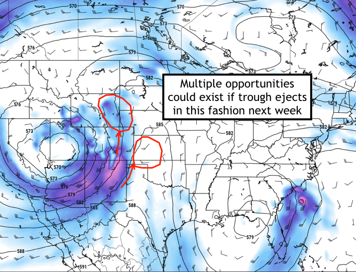 With that said – a few days of severe weather and tornado potential appear likely to unfold, which we are very excited about. We currently anticipate sitting out Friday’s severe weather threat across the Plains – and then repositioning for Saturday. At this juncture, we anticipate severe weather chances will increase on Sunday, Monday, and Tuesday respectively across the High Plains states.
