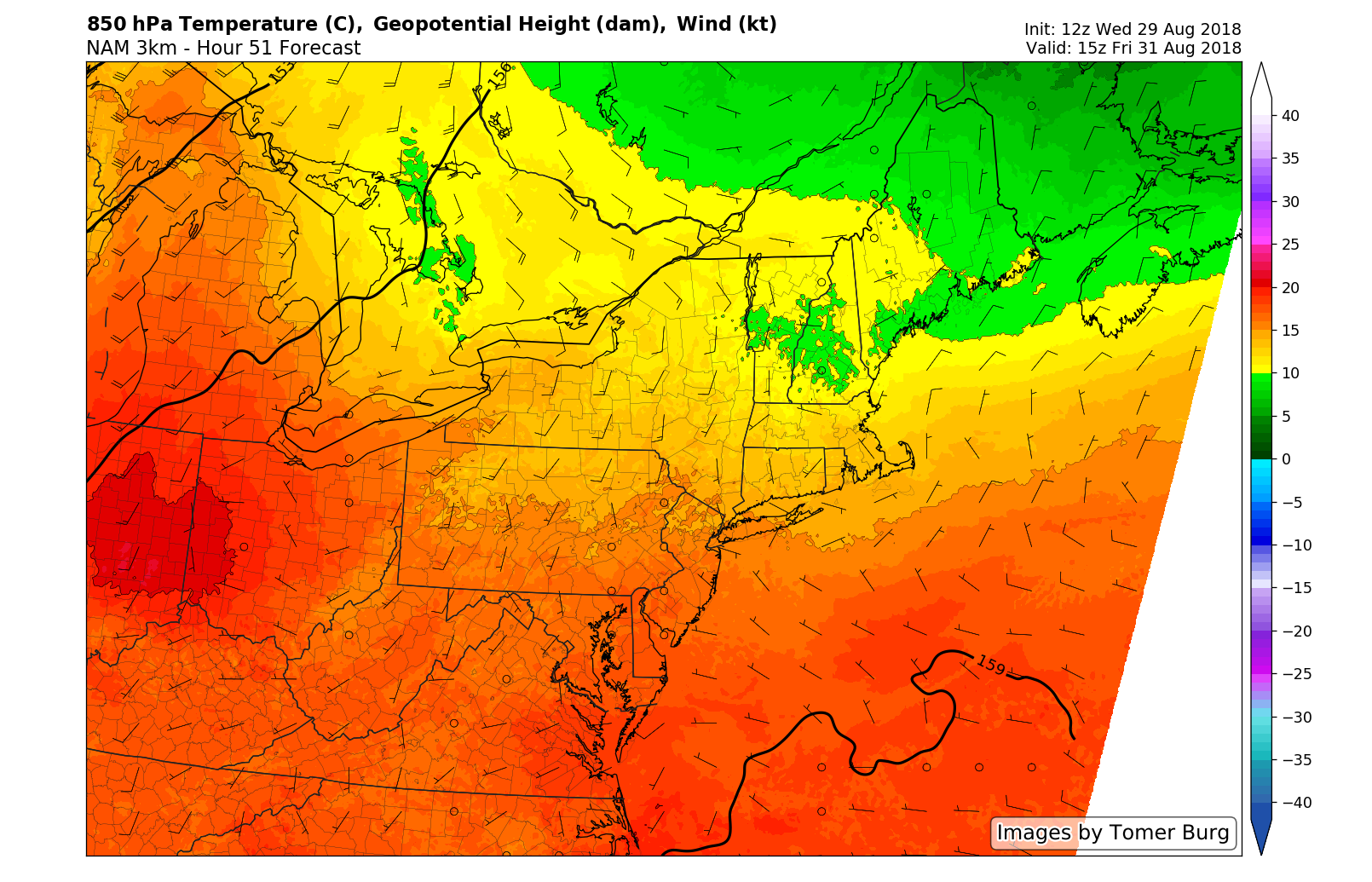 A frontal boundary shifts southward this weekend and brings a much needed, and much welcomed, cool down in temperatures throughout the atmosphere. In the mid levels, temperatures will cool by as much as 10-15 F, which is associated with a changed airmass and more northerly wind component. This is great news, because it means that cooler  air will funnel into the Northeast states.